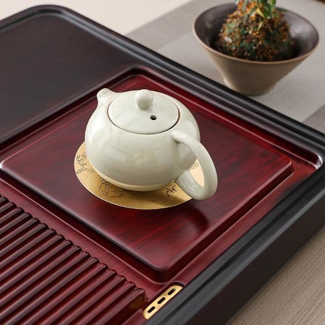 整塊木質茶盤家用實木簡約大小號功夫茶具黑檀花梨紅木託盤電木