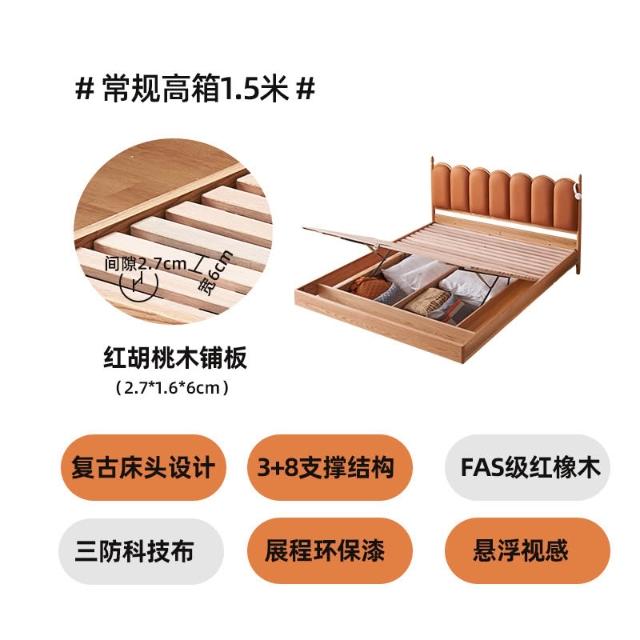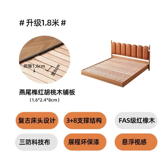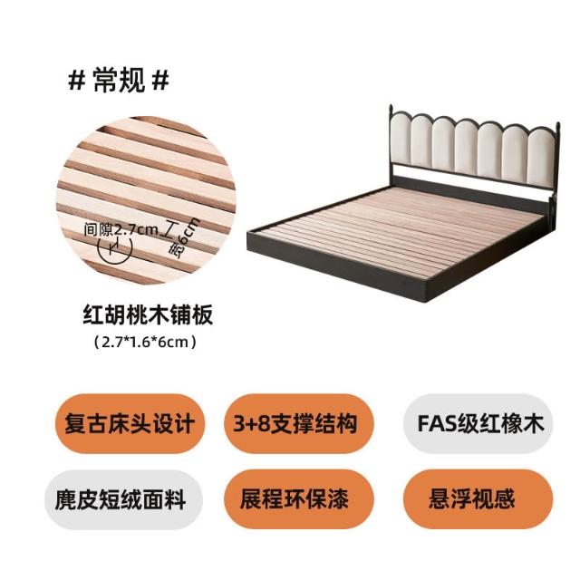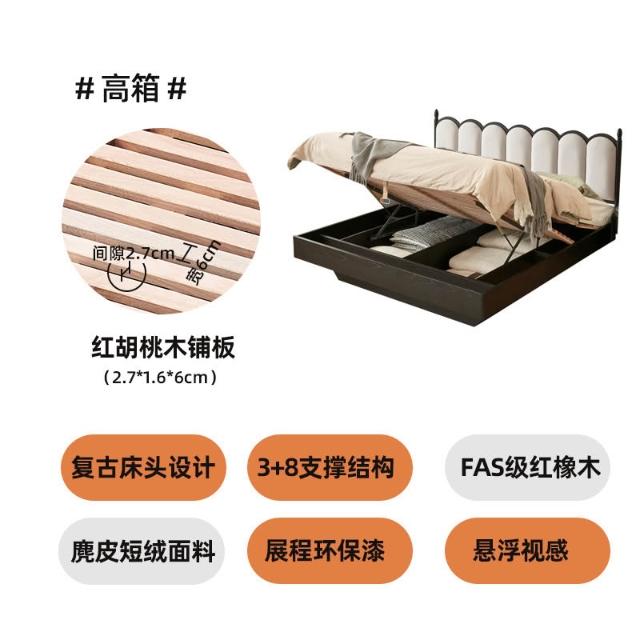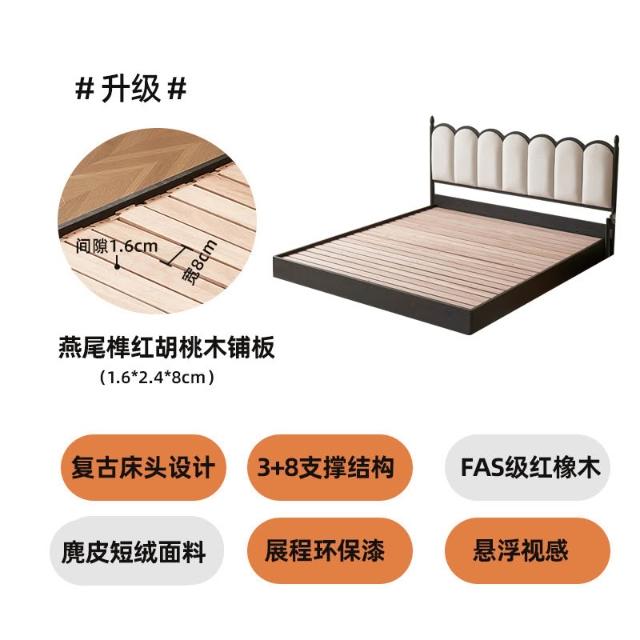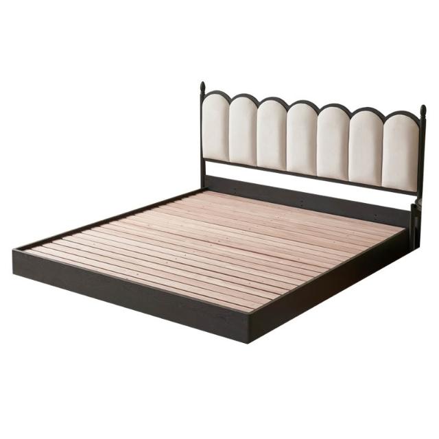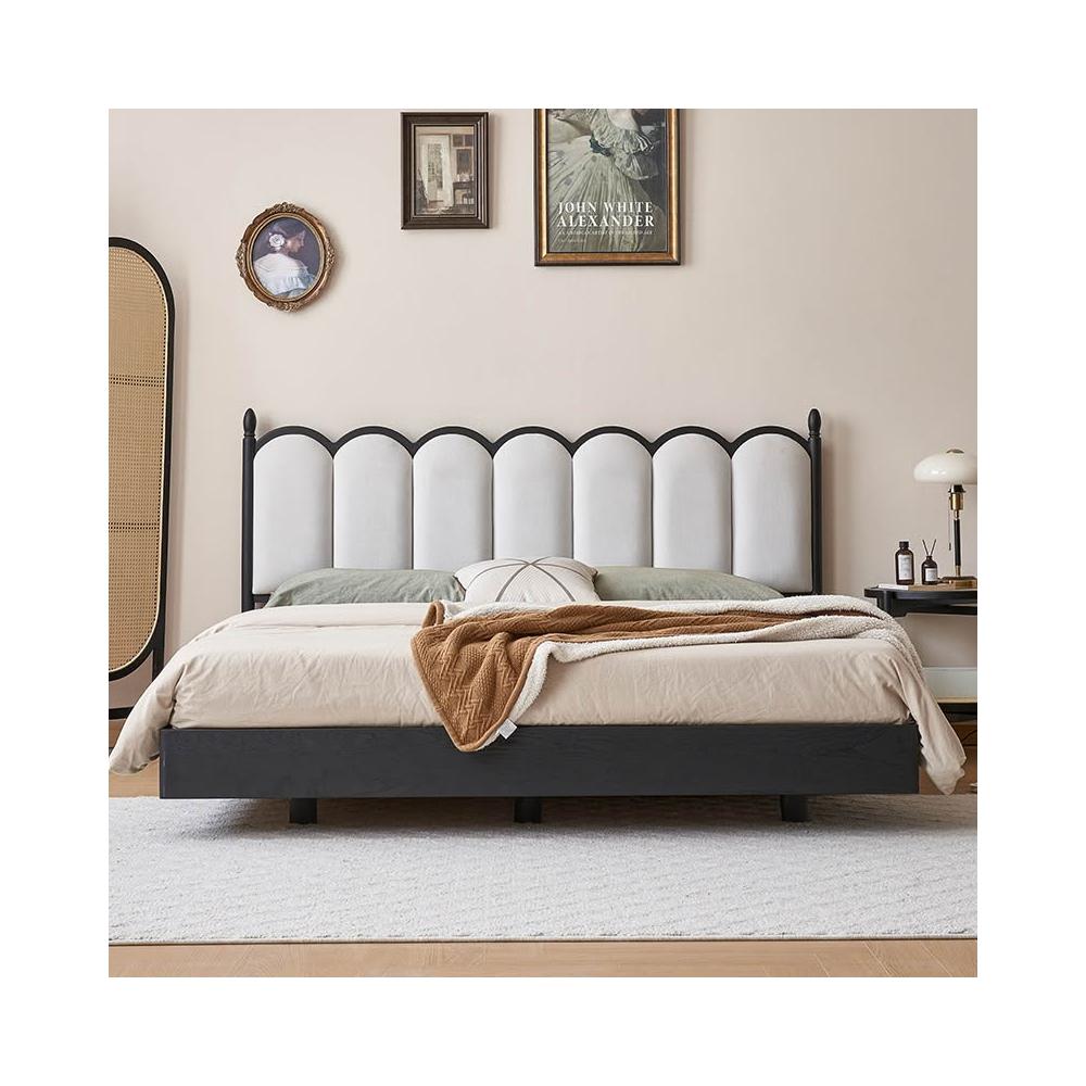 法式復古實木軟包床奶油風INS波浪日式原木床主臥儲物懸浮雙人床