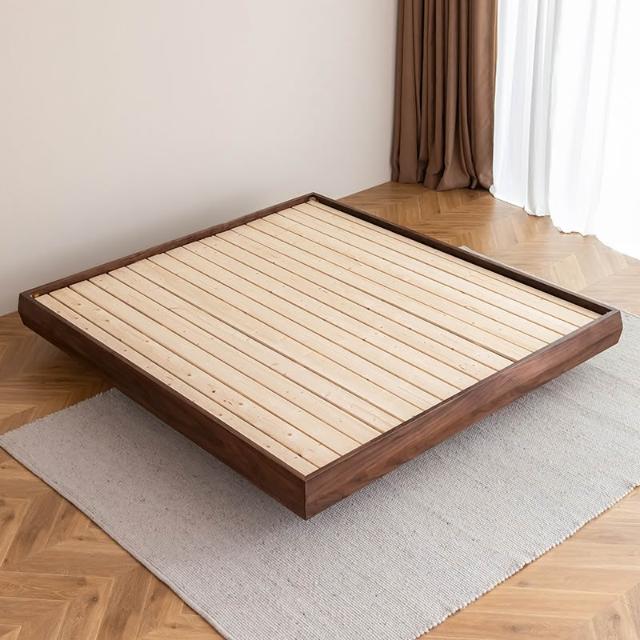 北歐黑胡桃木全實木床架簡約式輕奢型無床頭日式極簡榻榻米雙人床