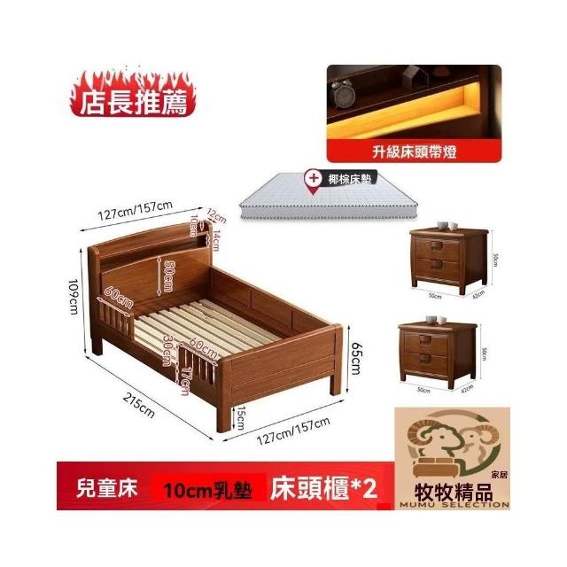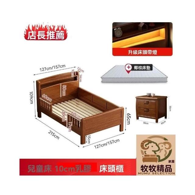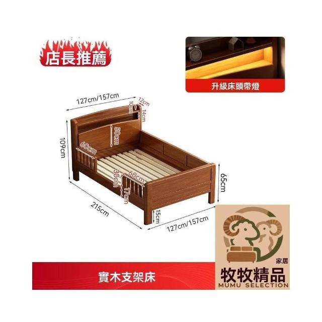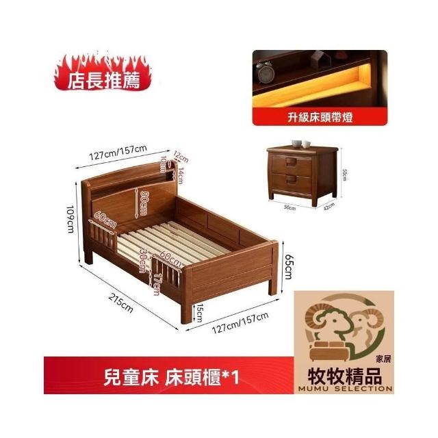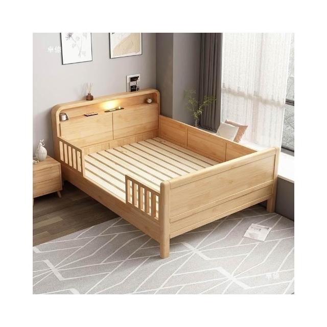 免運到府 單人床 1米5床 簡約一體床 新式日式床 護欄 全實木圍欄 原木親子拼接床
