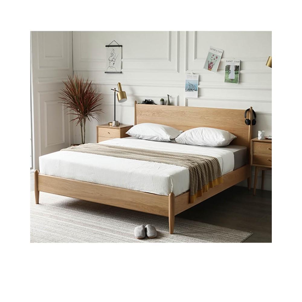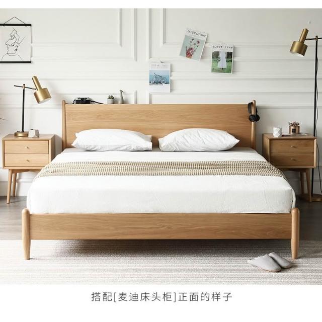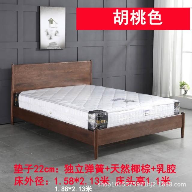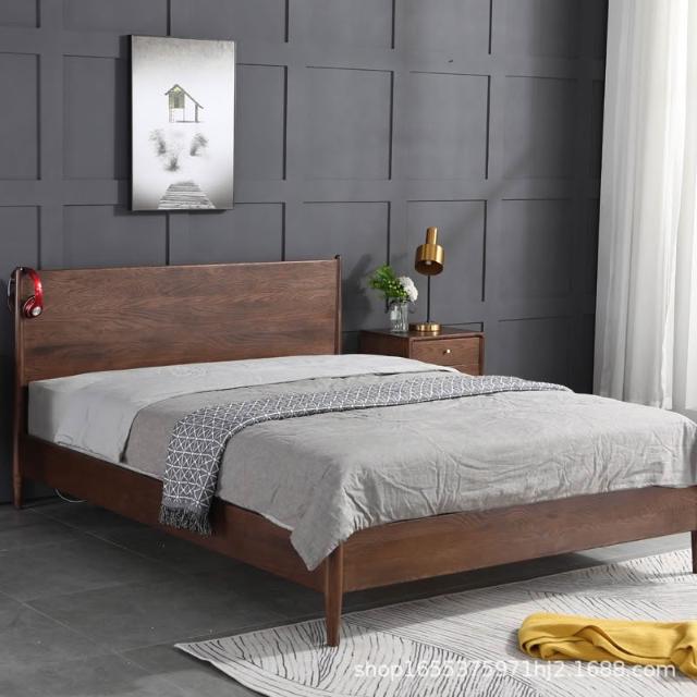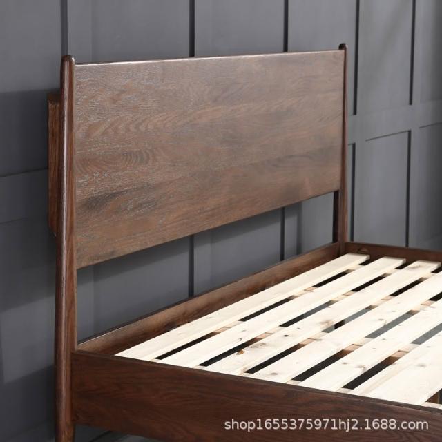 北欧风实木床橡木双人床婚床现代简约黑胡桃木色主卧日式1.5米1.8