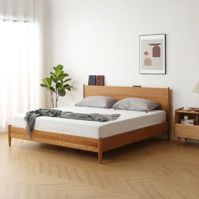 北欧实木床现代简约主卧双人床1.5米1.8米樱桃木日式卧室家具婚床