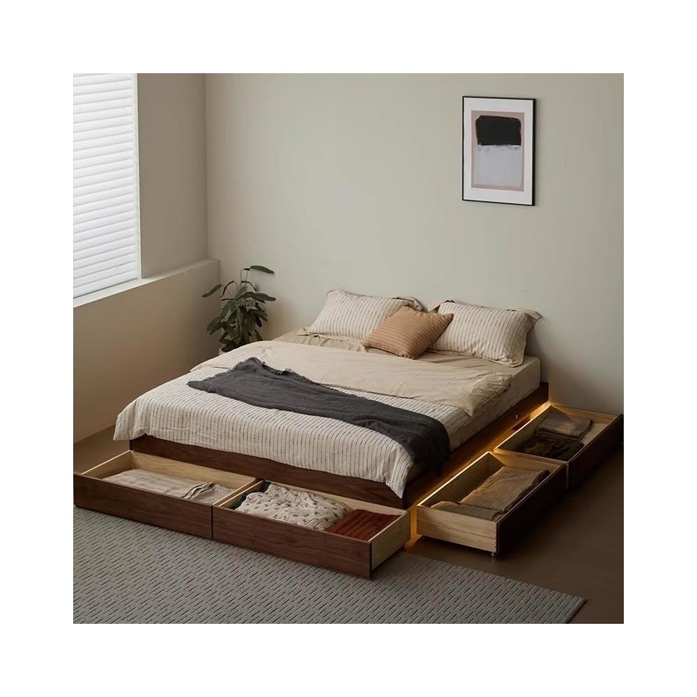 北美黑胡桃木實木床日式櫻桃木原木臥室多功能儲物榻榻米抽屜矮床