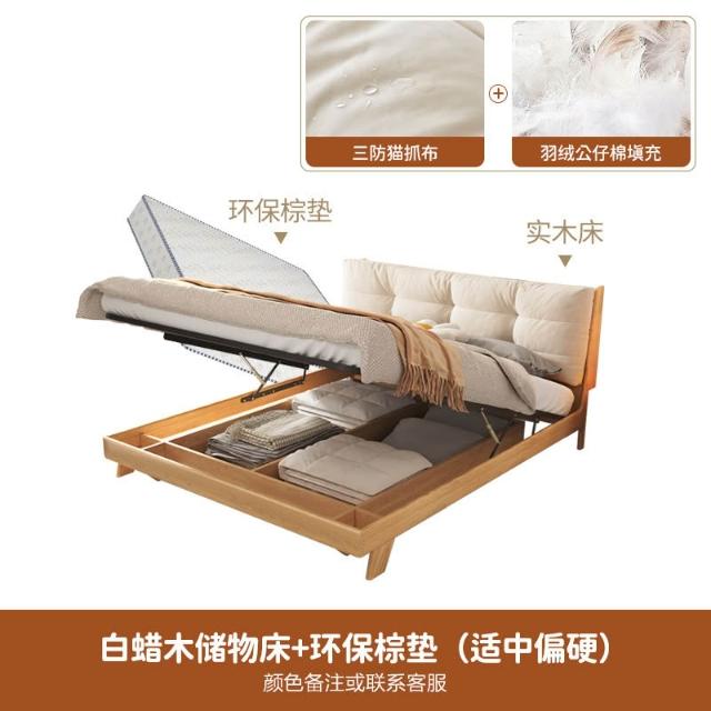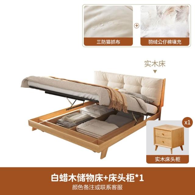 日式实木云朵床白蜡木高箱储物1.8米双人主卧原木现代简约侘寂风