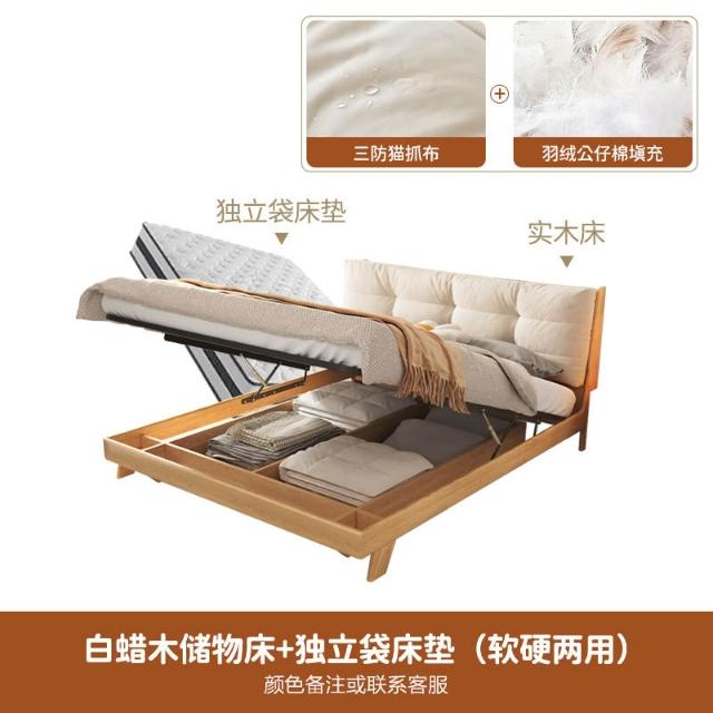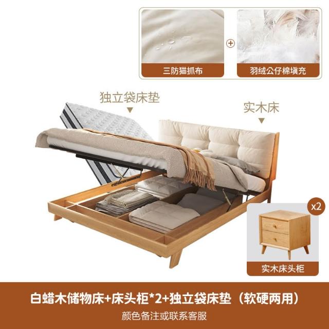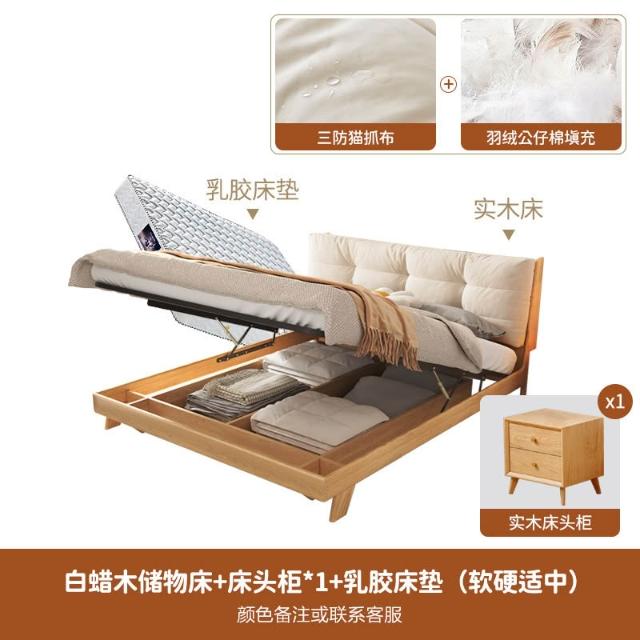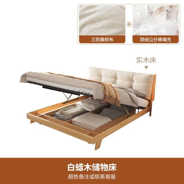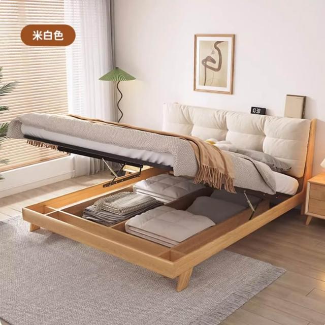 日式实木云朵床白蜡木高箱储物1.8米双人主卧原木现代简约侘寂风