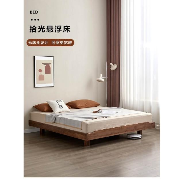 北美黑胡桃木悬浮床无床头床榻榻米床小户型床全实木床床架矮床