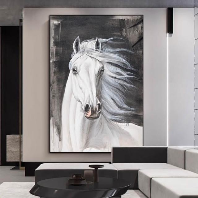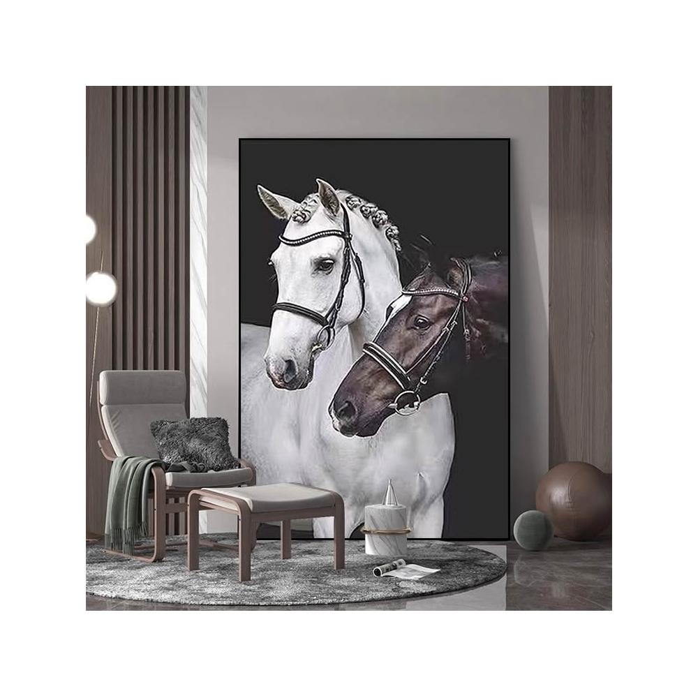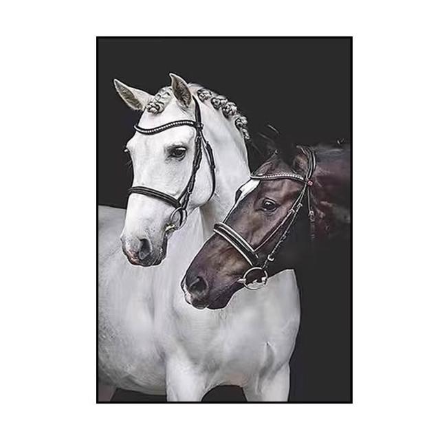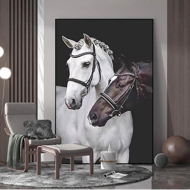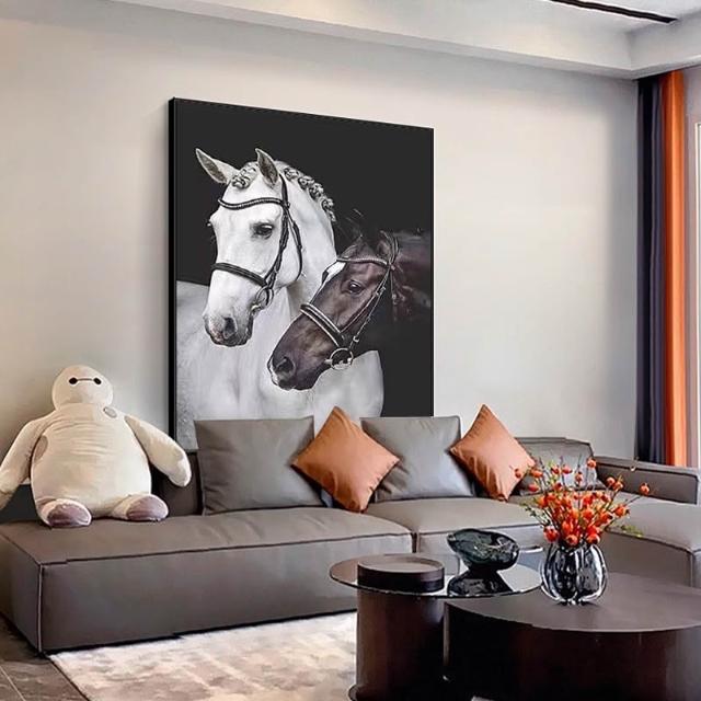黑白雙馬裝飾畫簡約風格玄關走廊掛畫高雅藝術客廳沙發背景牆壁畫