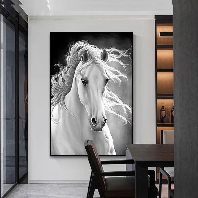 黑白雙馬裝飾畫簡約風格玄關走廊掛畫高雅藝術客廳沙發背景牆壁畫