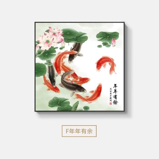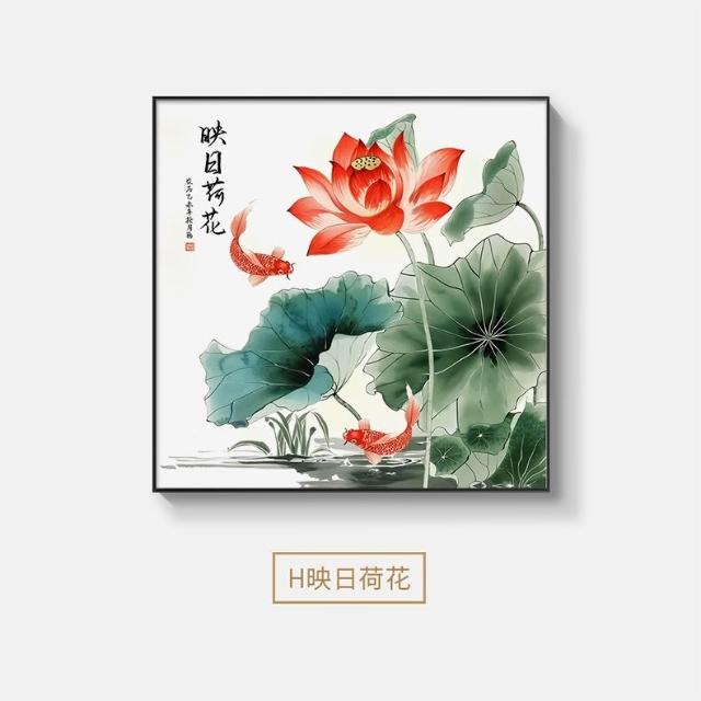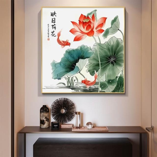 荷花九魚圖裝飾畫新中式飯廳餐廳牆面掛畫風水招財鯉年年有魚壁畫