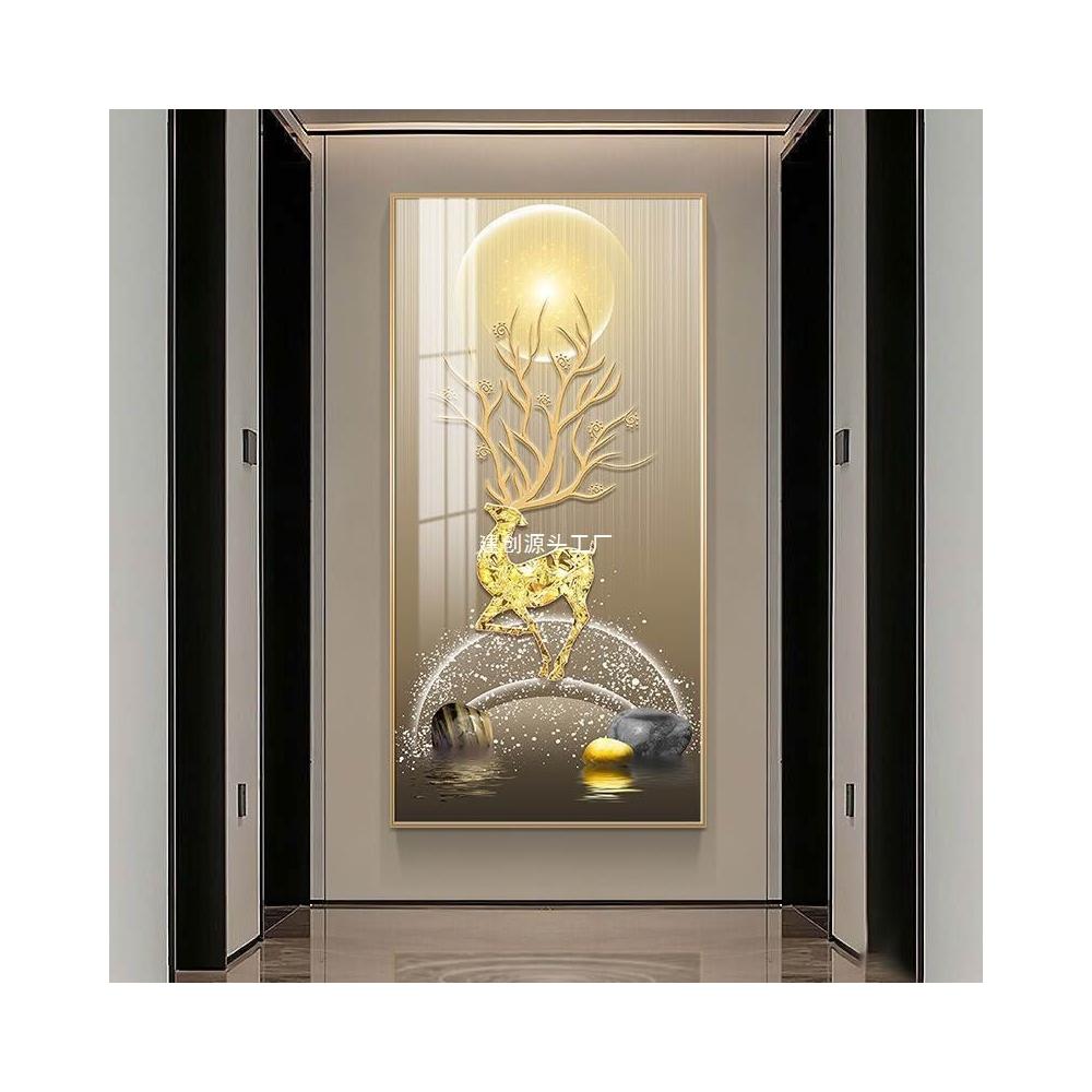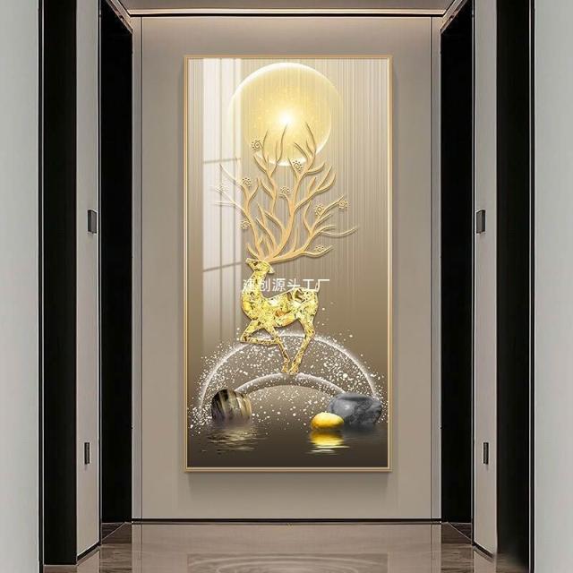 玄關裝飾畫輕奢簡約大氣豎版掛畫麋鹿進門玄關畫走廊過道裝飾壁畫
