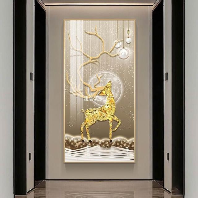 玄關裝飾畫輕奢簡約大氣豎版掛畫麋鹿進門玄關畫走廊過道裝飾壁畫
