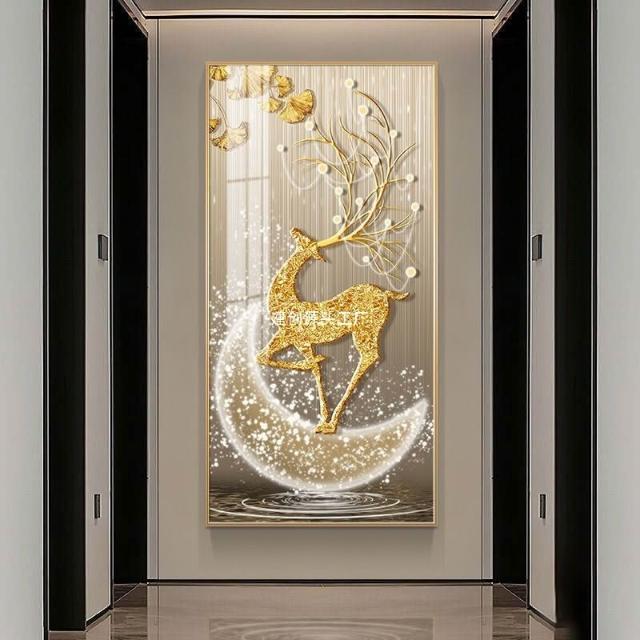 玄關裝飾畫輕奢簡約大氣豎版掛畫麋鹿進門玄關畫走廊過道裝飾壁畫