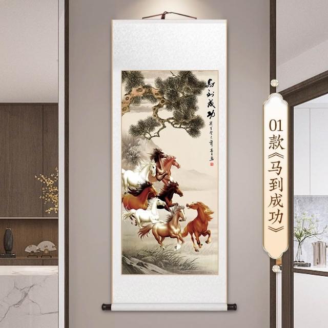 免運含稅 馬到成功卷軸掛畫 八駿圖字畫 新中式客廳裝飾畫 駿馬圖 玄關書房茶室壁畫