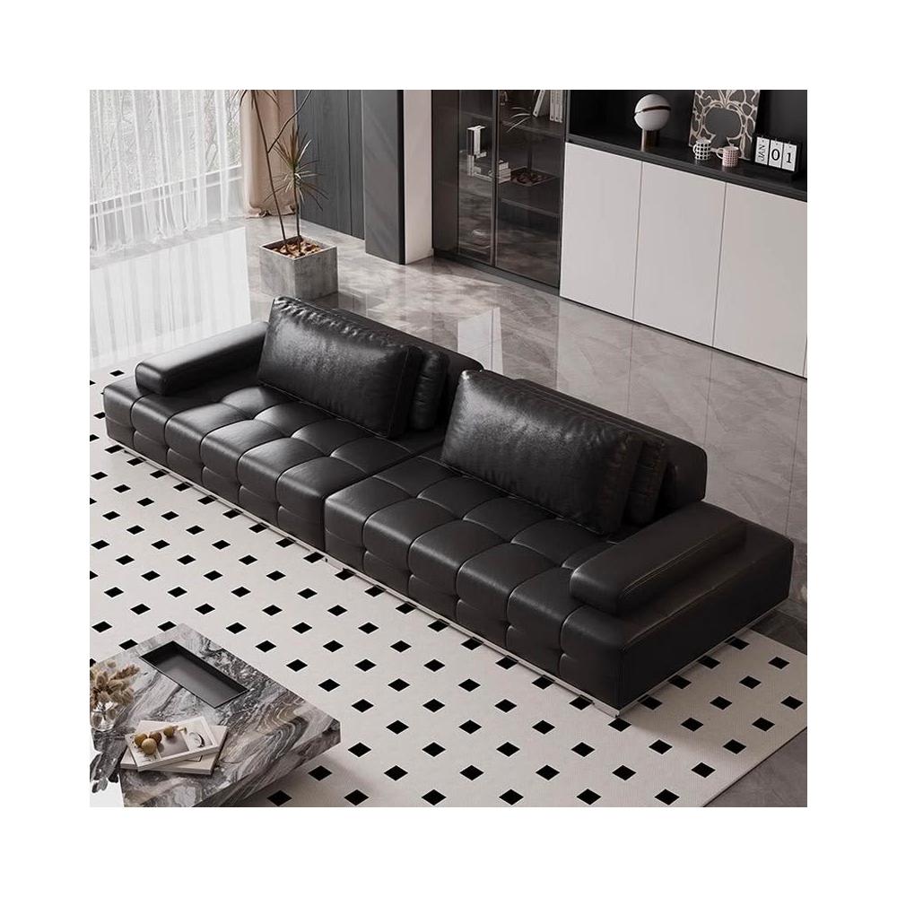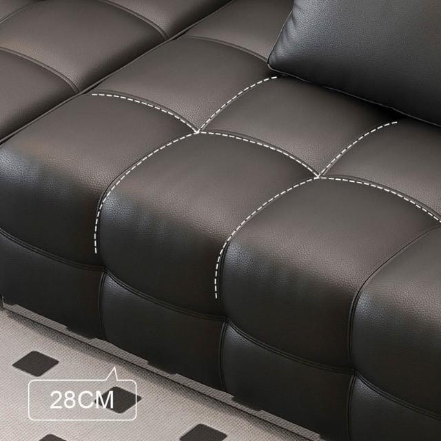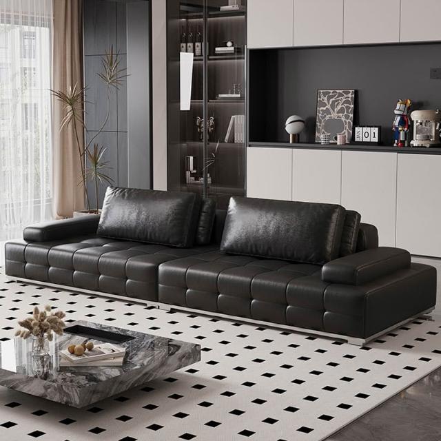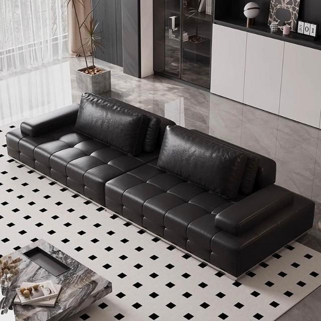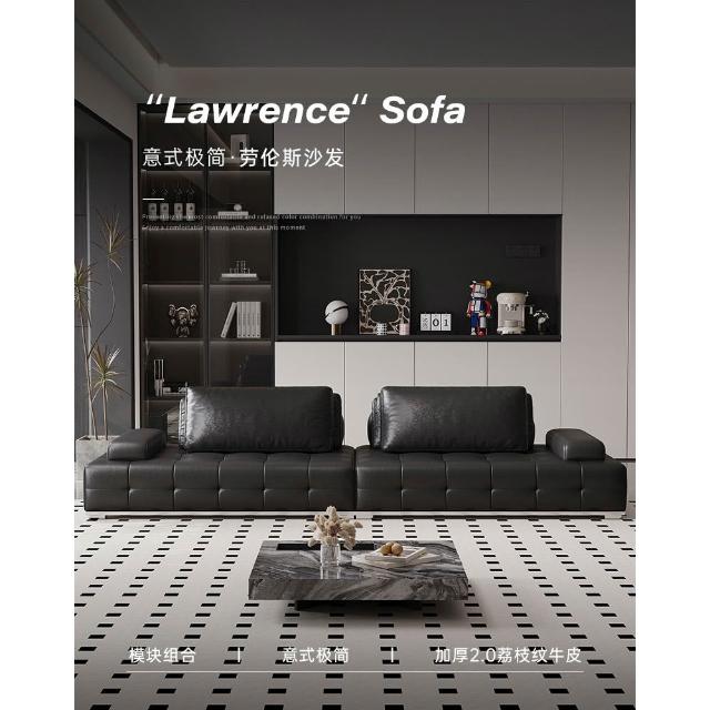 佛山現代極簡真皮沙發客廳時增頭層牛皮四人位直排勞倫斯實木沙發