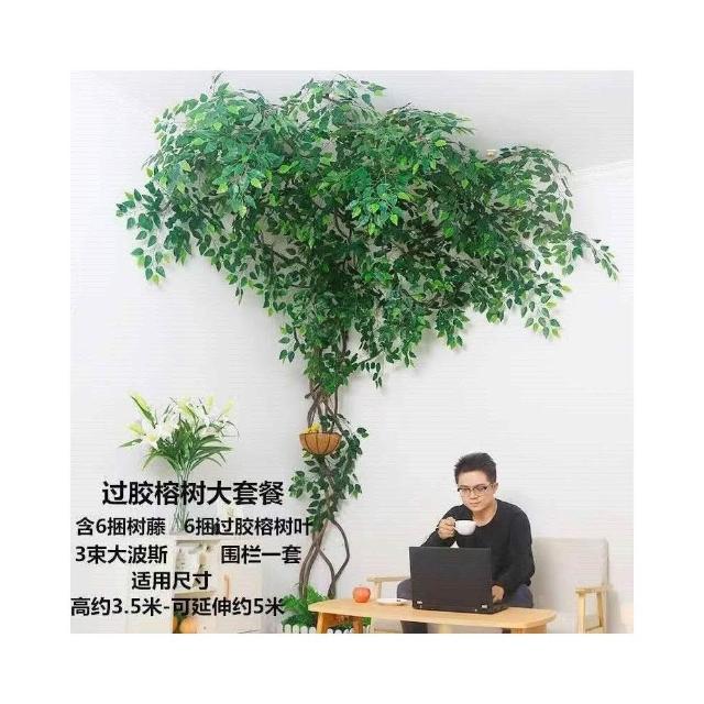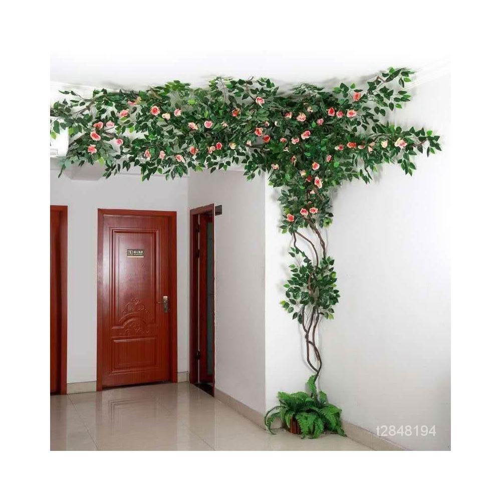免運 可開髮票 仿真樹藤藤條藤蔓綠植室內管道客廳植物墻 假樹枝榕樹葉纏繞裝飾 假植物落地擺件居傢裝飾 人造植 仿真植物