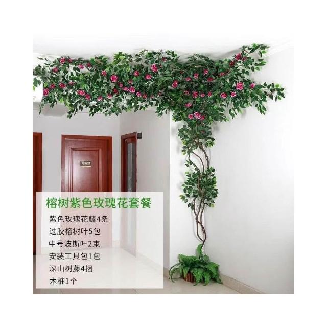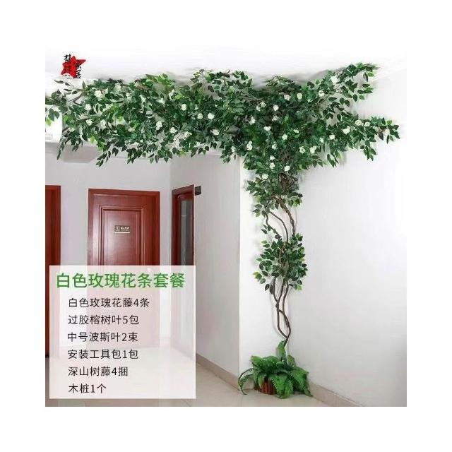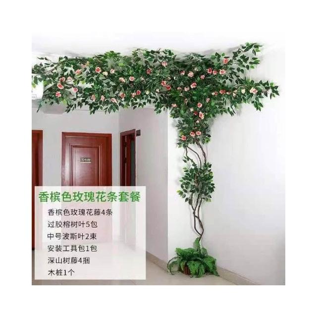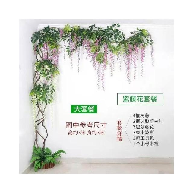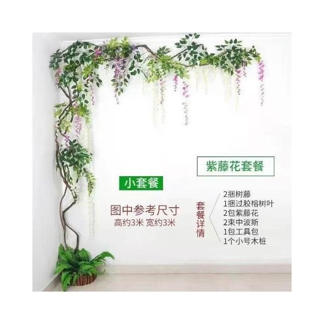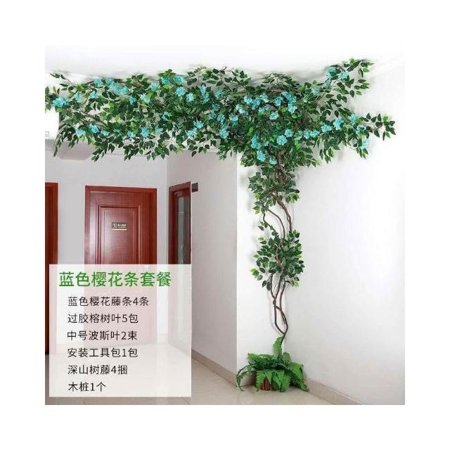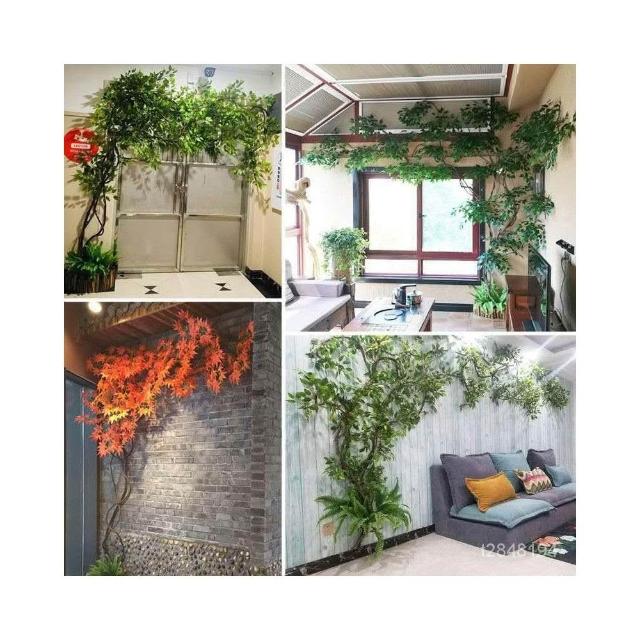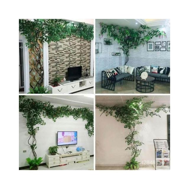 免運 可開髮票 仿真樹藤藤條藤蔓綠植室內管道客廳植物墻 假樹枝榕樹葉纏繞裝飾 假植物落地擺件居傢裝飾 人造植 仿真植物