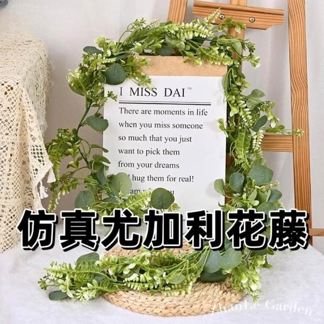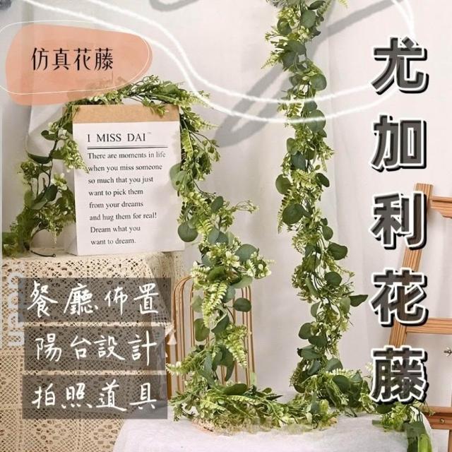 花藤 仿真花藤 藤蔓 圓葉尤加利 1.8米花藤 人造綠植 壁掛植物 仿真植物桉樹 藤條尤加利草藤曼 假綠植裝飾