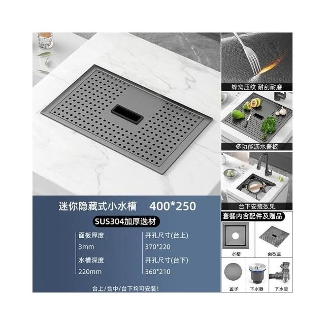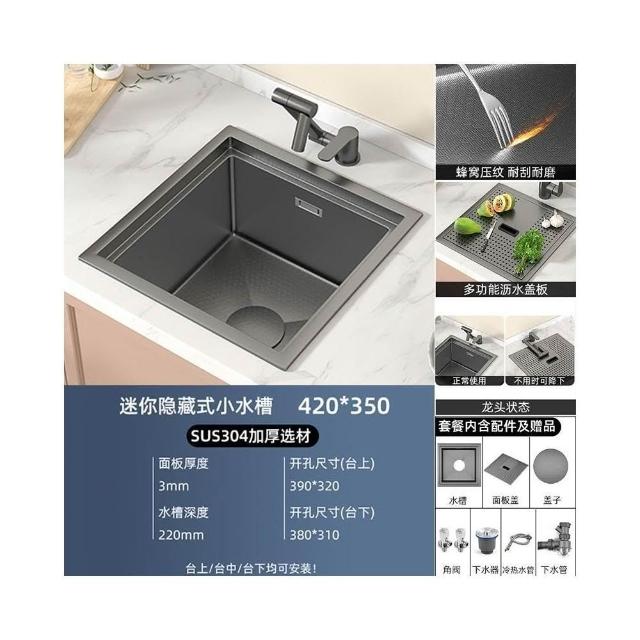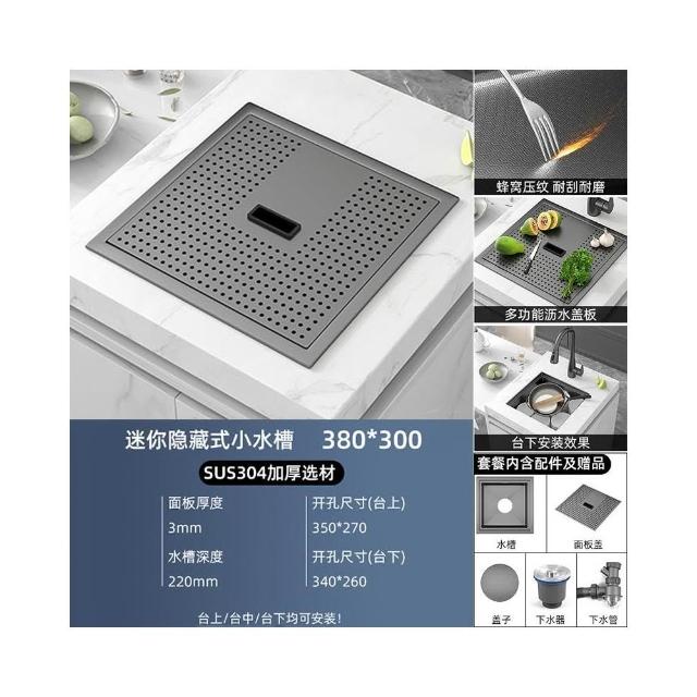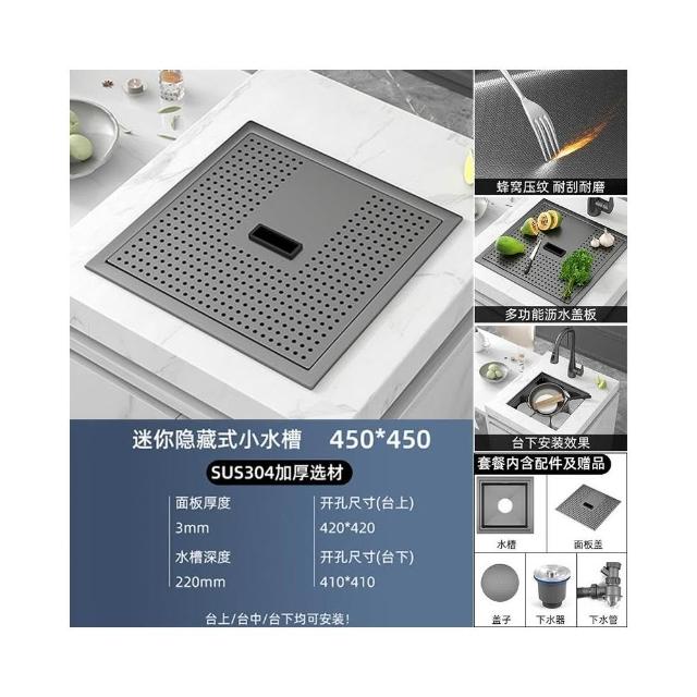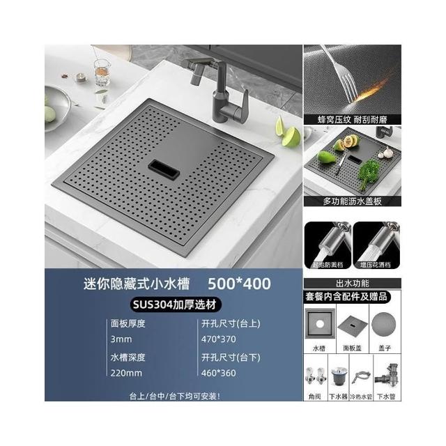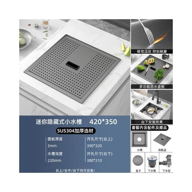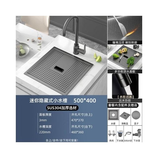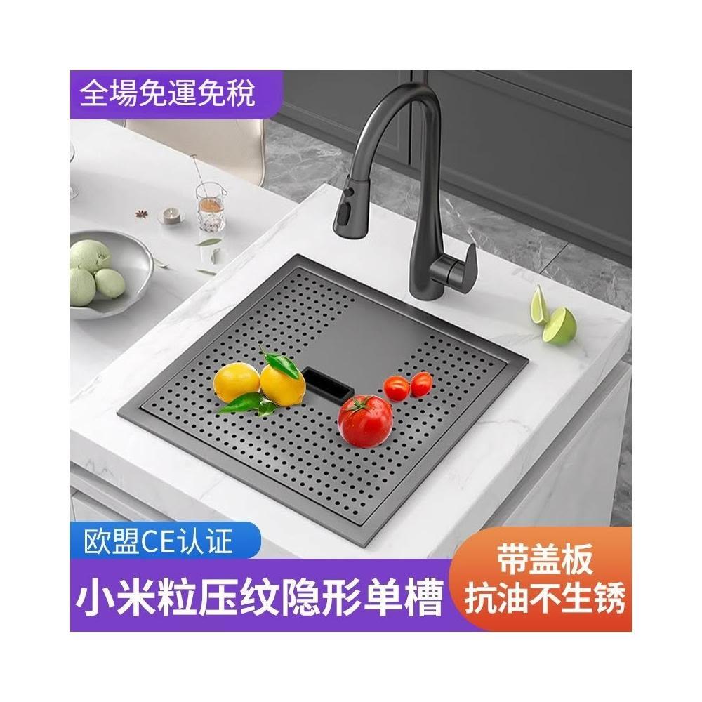 免運免稅 小戶型水槽櫃 小米粒壓紋小水槽 吧臺隱形單槽 帶蓋板西廚隱藏式中島洗菜盆