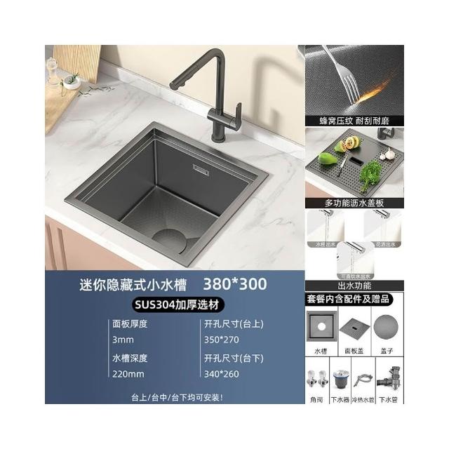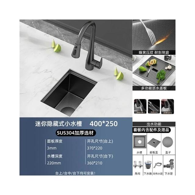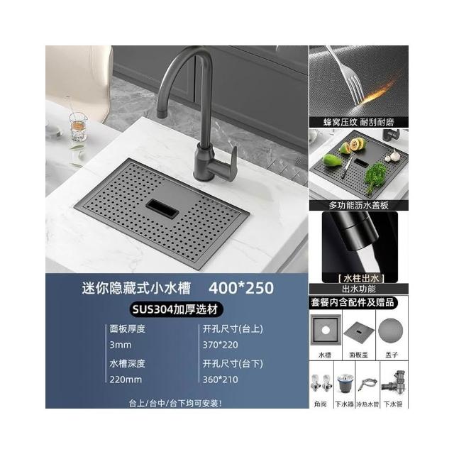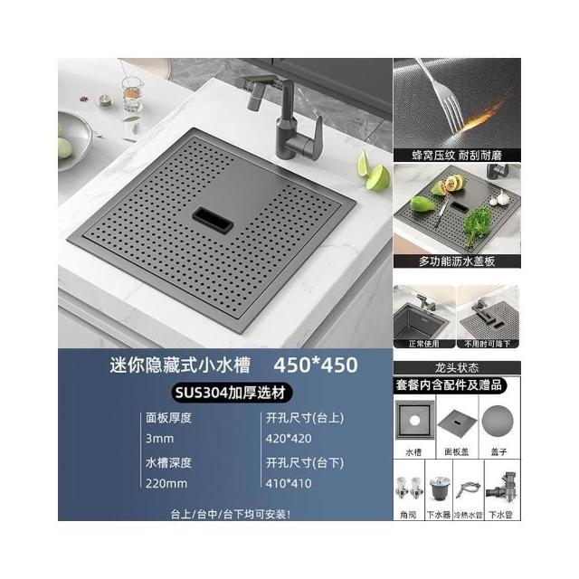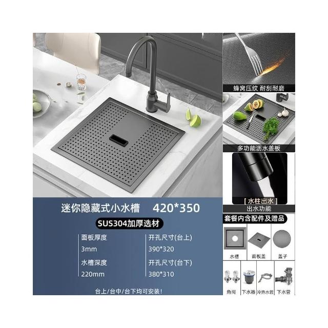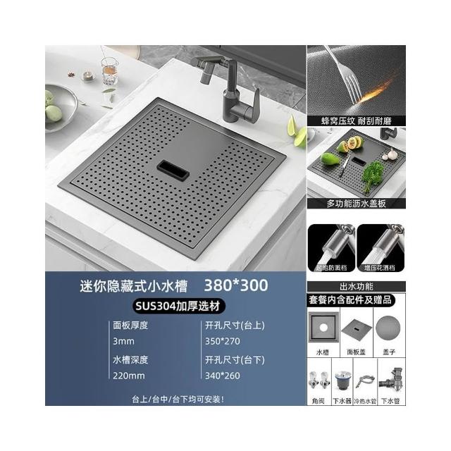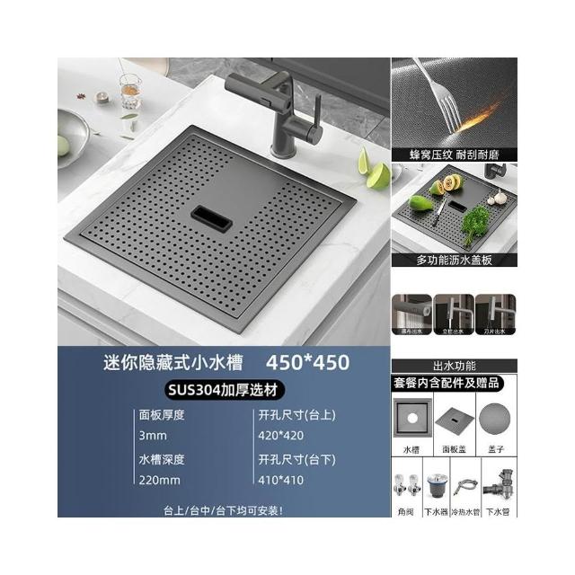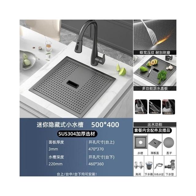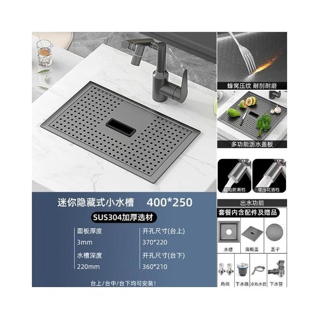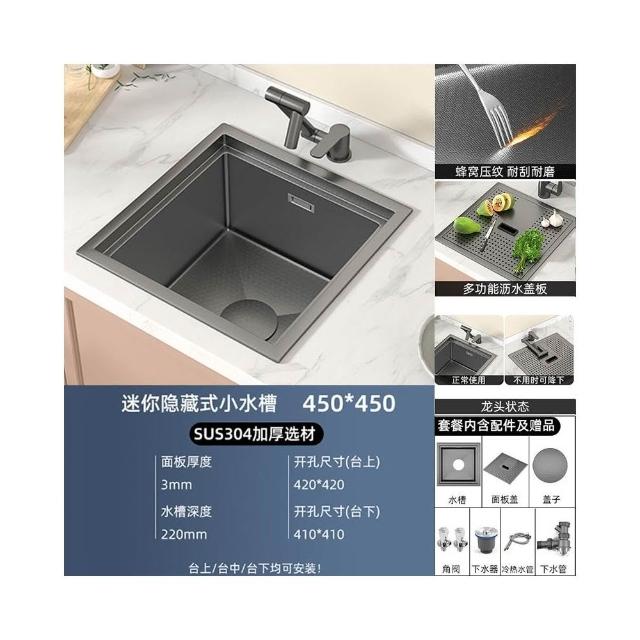 免運免稅 小戶型水槽櫃 小米粒壓紋小水槽 吧臺隱形單槽 帶蓋板西廚隱藏式中島洗菜盆