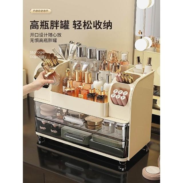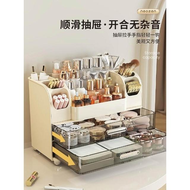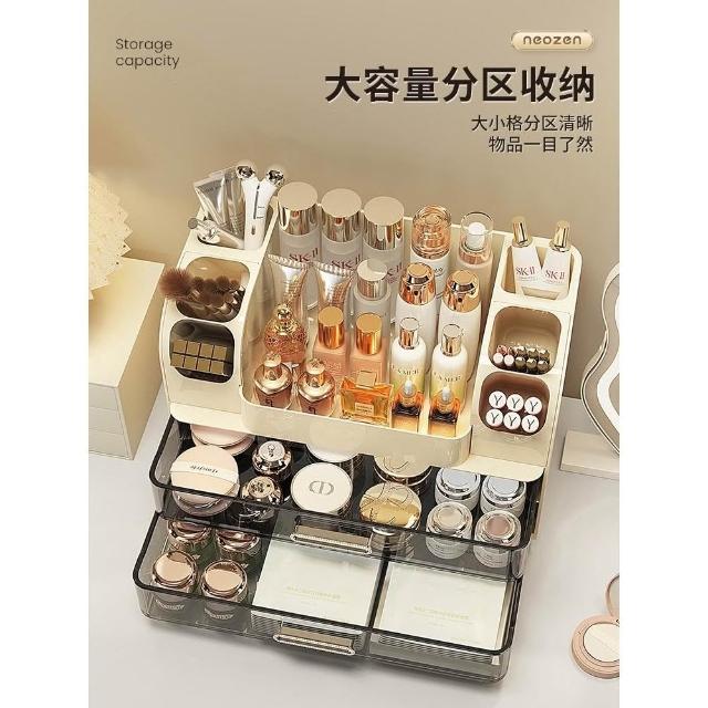 化妝品收納盒 桌面高級感收納櫃 護膚品收納箱 口紅香水分格整理盒 梳粧檯置物架子