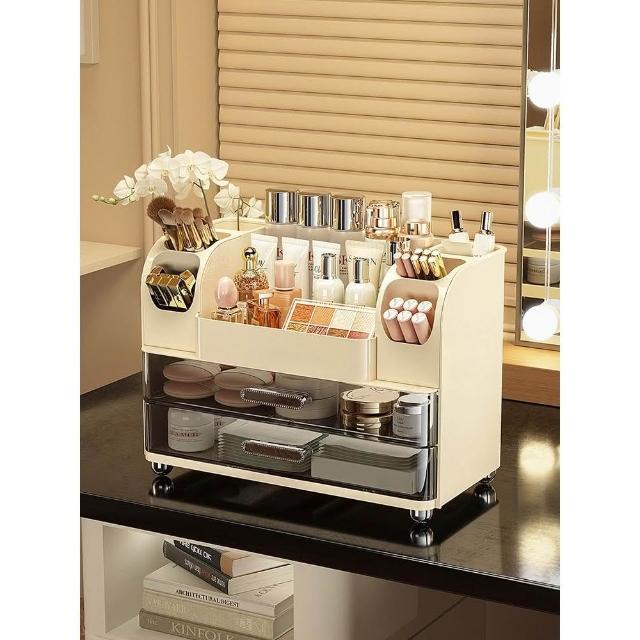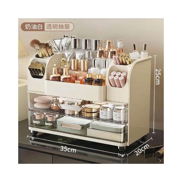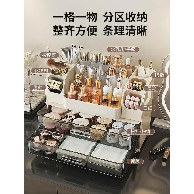 化妝品收納盒 桌面高級感收納櫃 護膚品收納箱 口紅香水分格整理盒 梳粧檯置物架子
