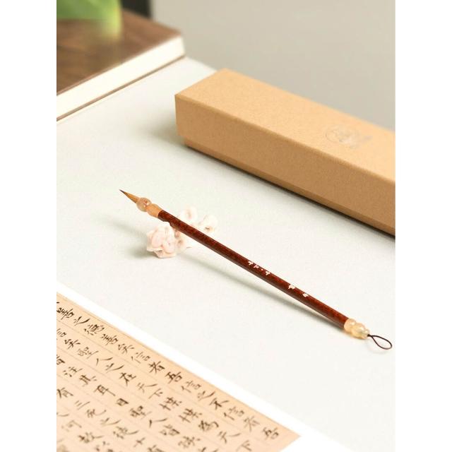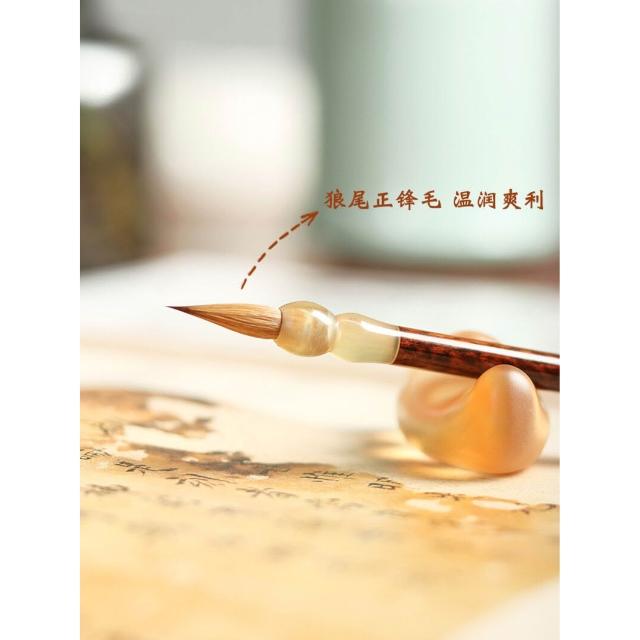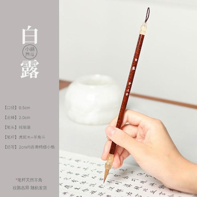 全台免運 白露小楷毛筆小楷純狼毫羊角筆鬥虎斑木中楷臨摹專業級毛筆