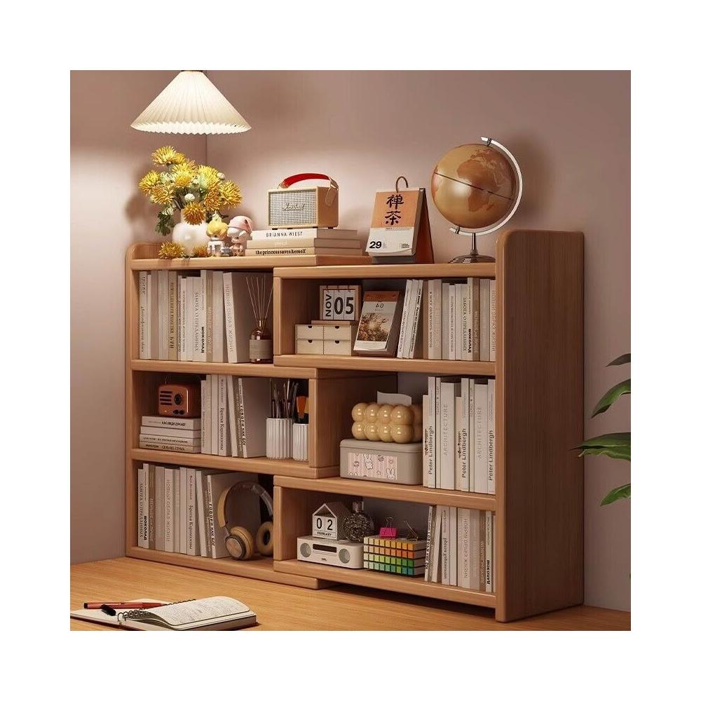 實木書架桌面置物架兒童書桌收納架家用桌上小書櫃辦公室儲物櫃子 牧牧
