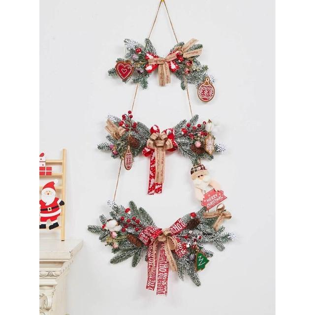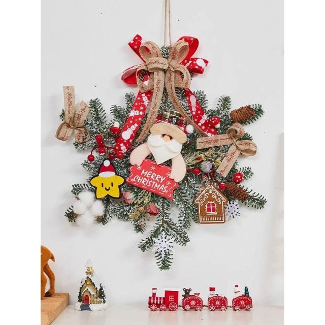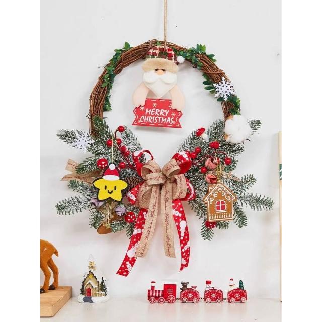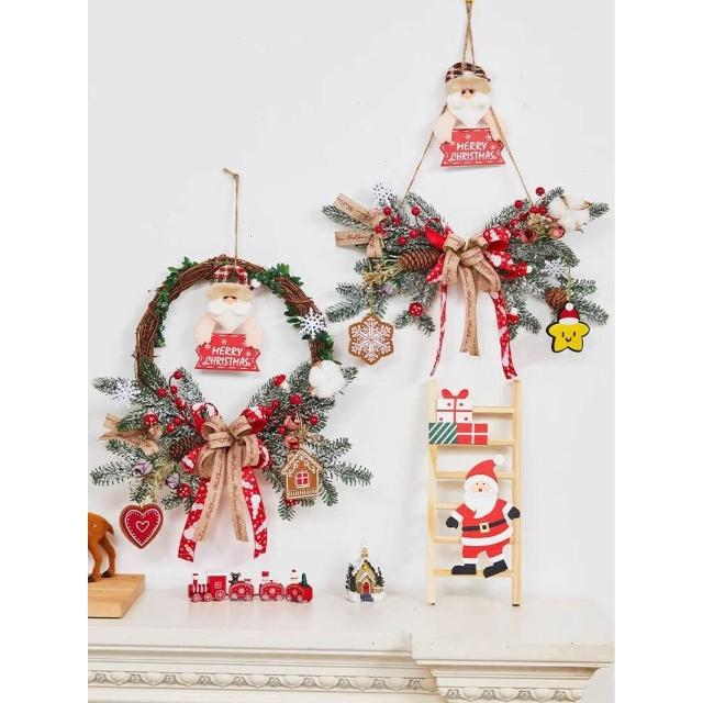 聖誕節裝飾品花環門掛聖誕老人牛角藤條酒店場景布置墻掛創意吊飾 牧牧