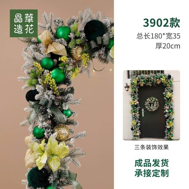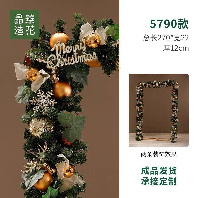 晶華2.7米聖誕藤條加密松針門眉拱門酒店商場藤條聖誕欄桿裝飾品 牧牧