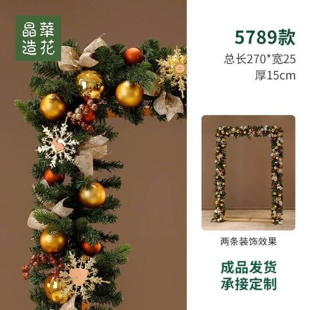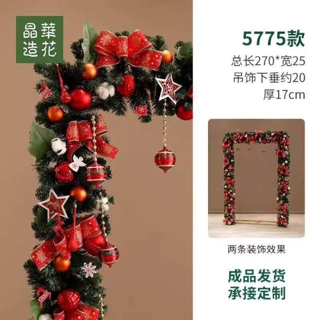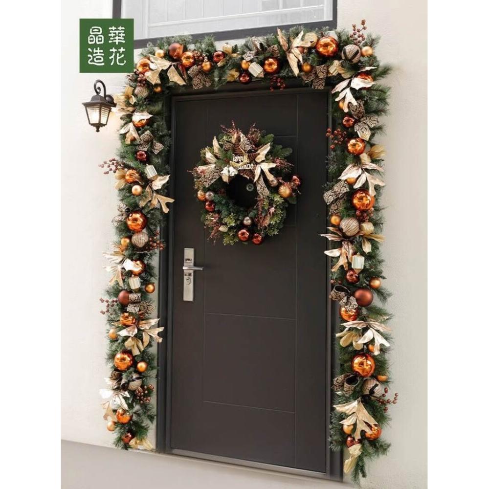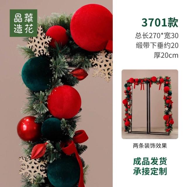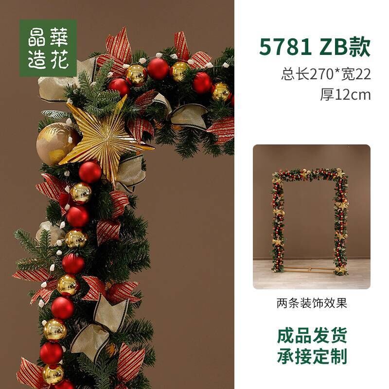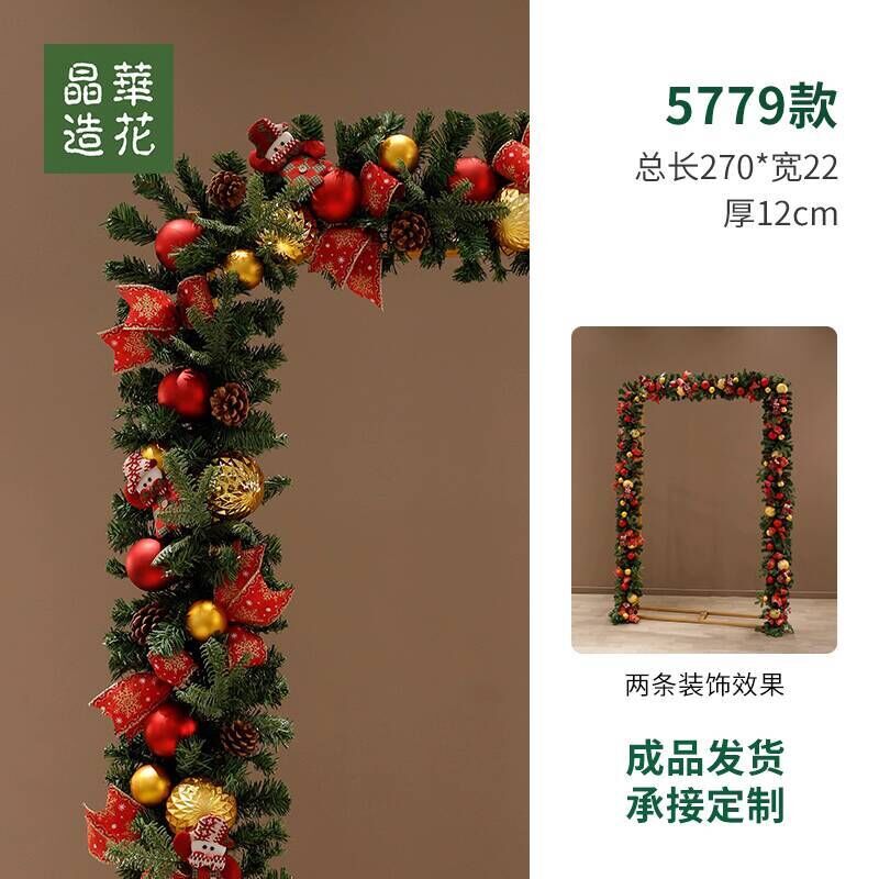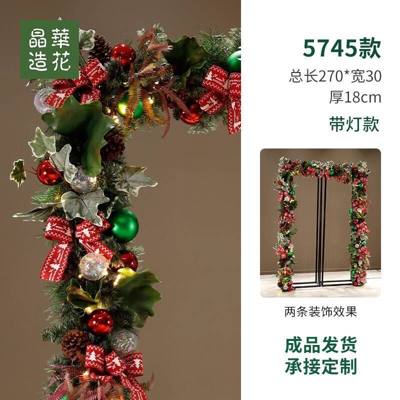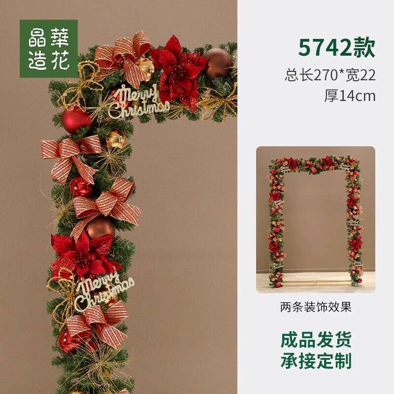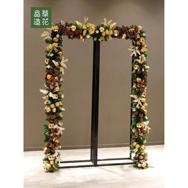 晶華2.7米聖誕藤條加密松針門眉拱門酒店商場藤條聖誕欄桿裝飾品 牧牧