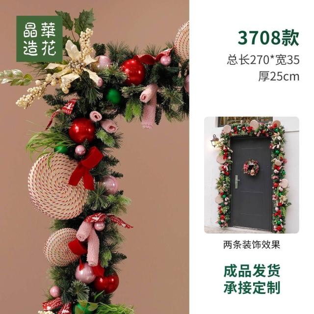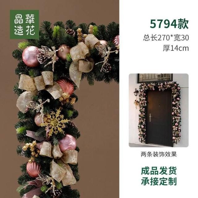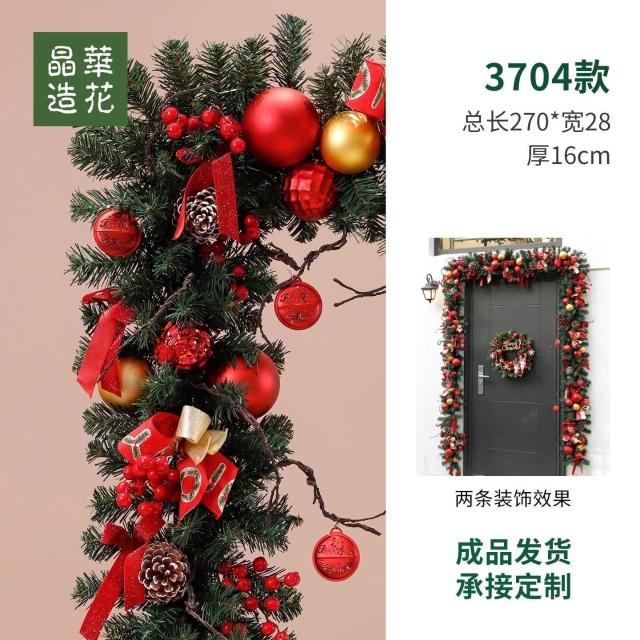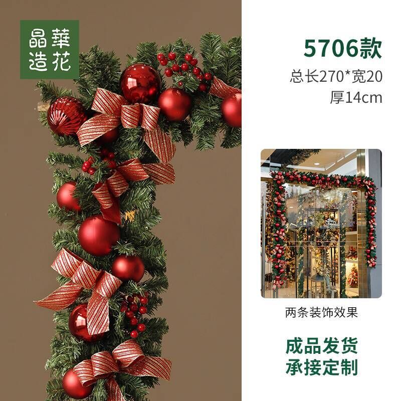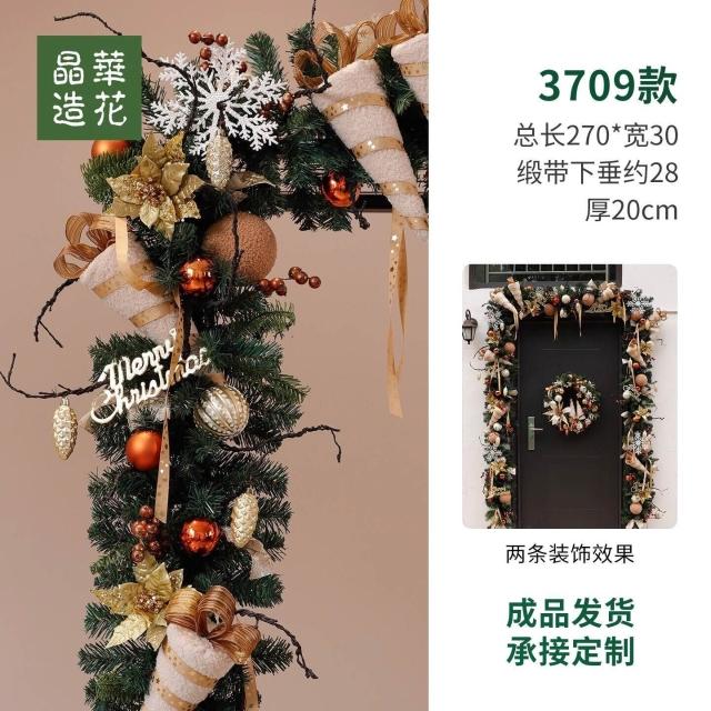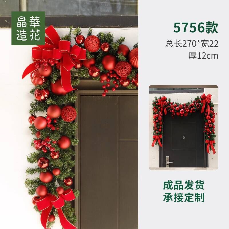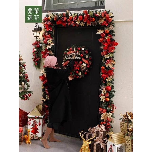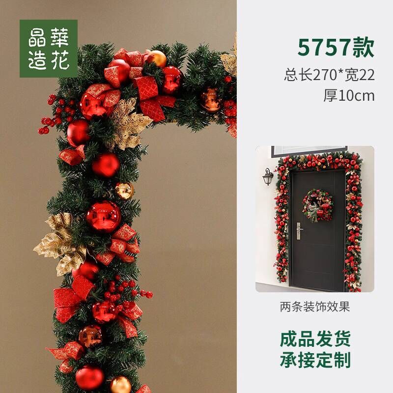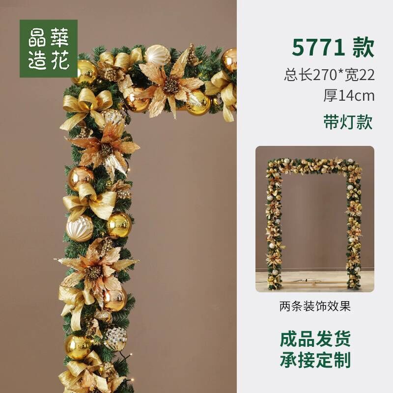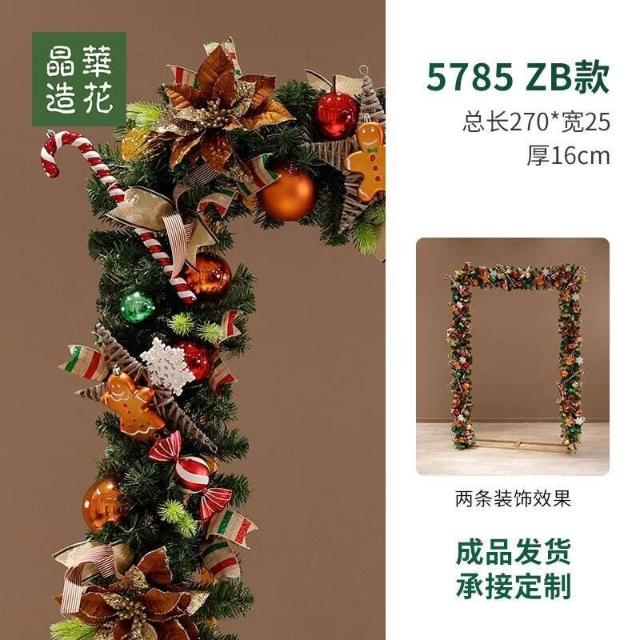 晶華2.7米聖誕藤條加密松針門眉拱門酒店商場藤條聖誕欄桿裝飾品 牧牧