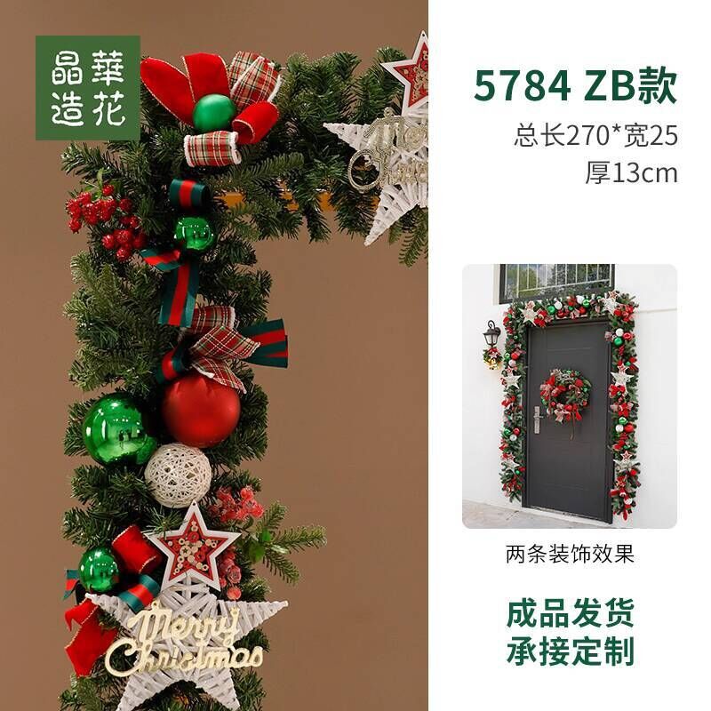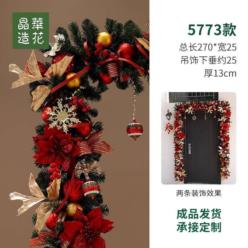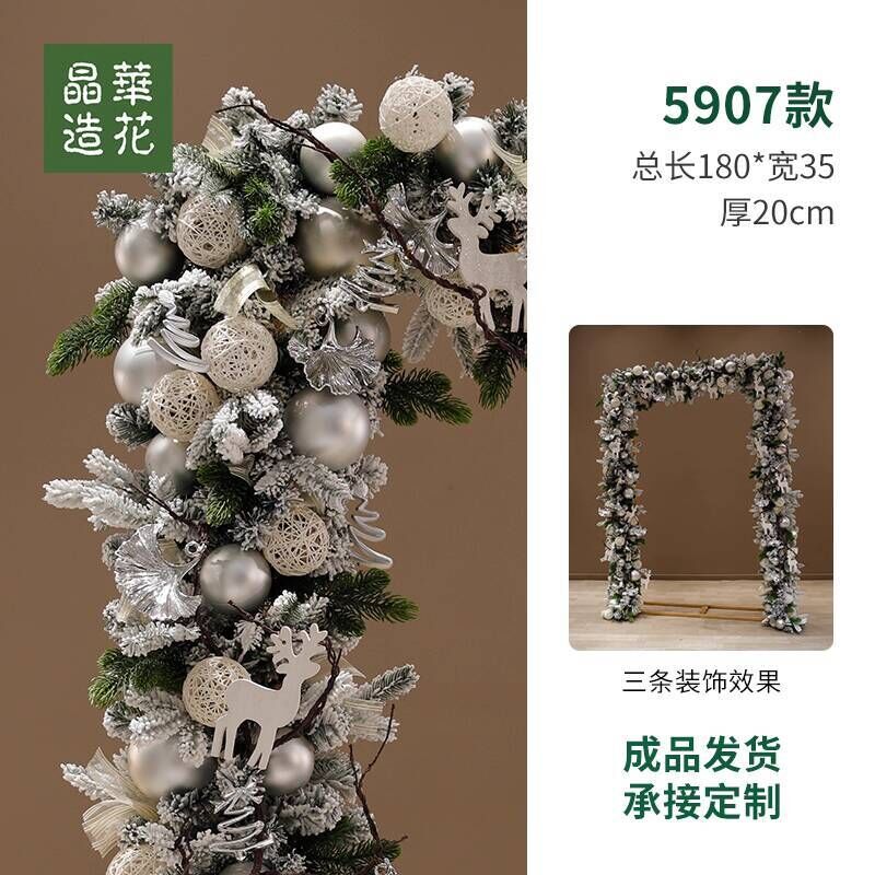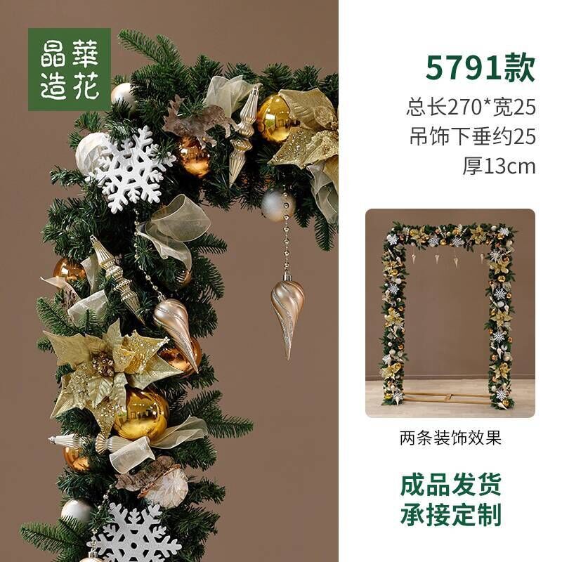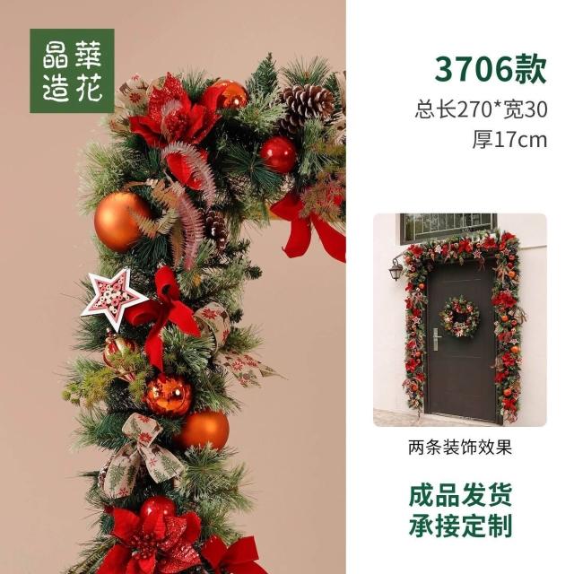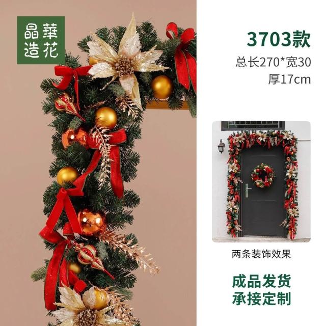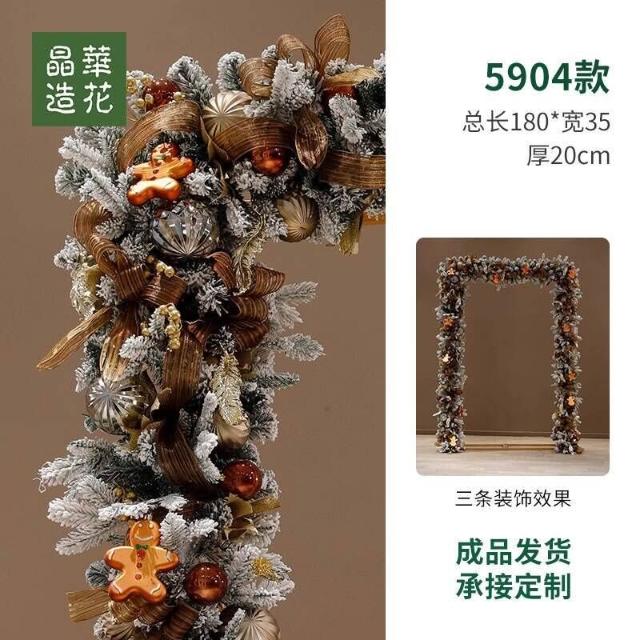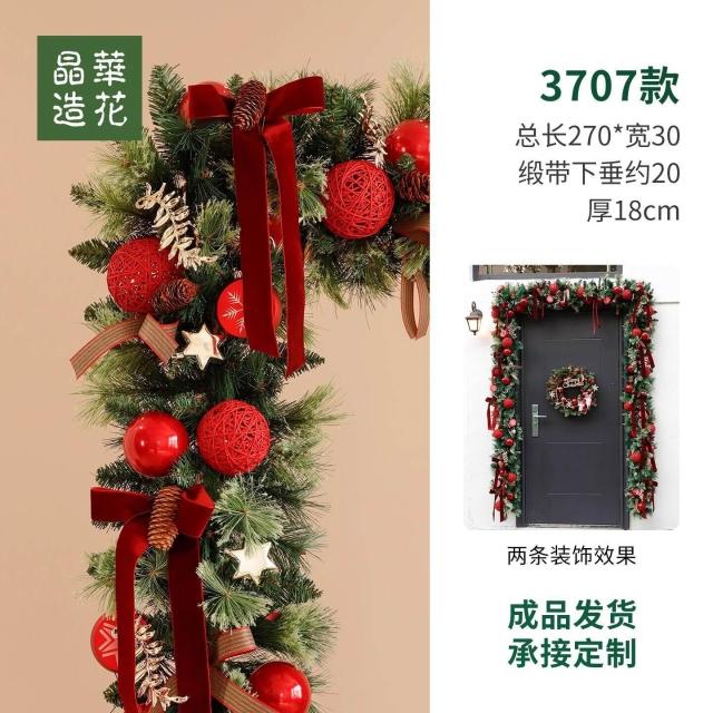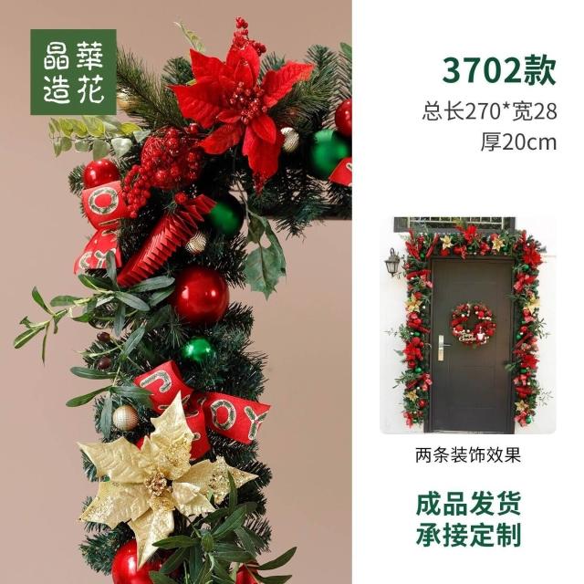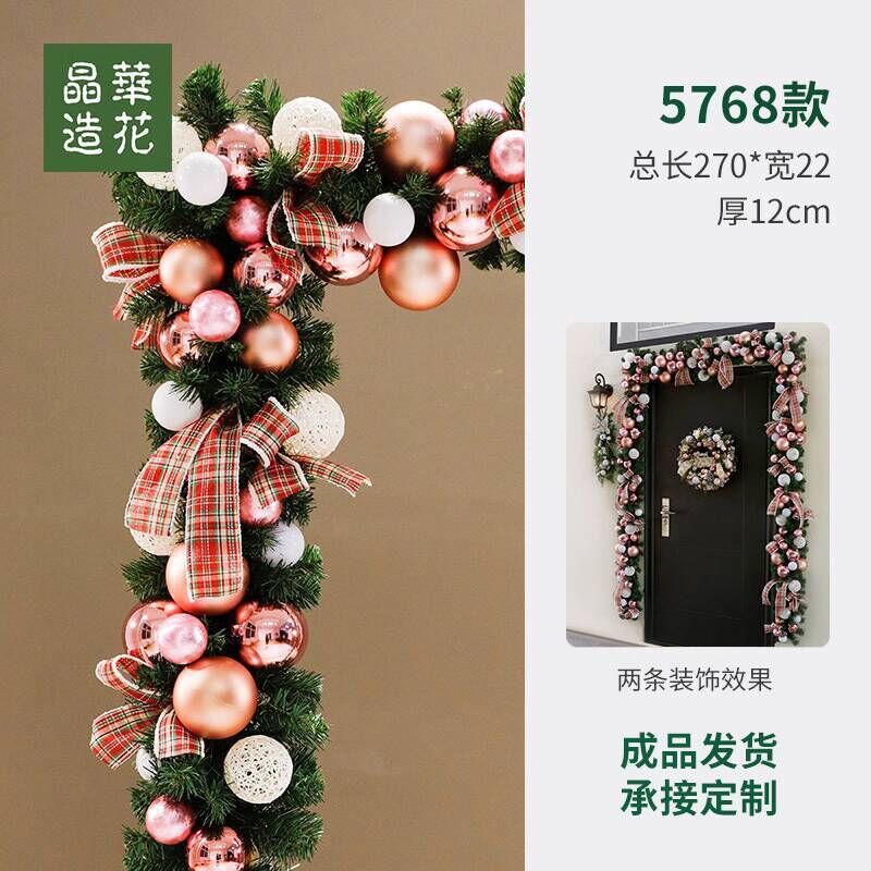 晶華2.7米聖誕藤條加密松針門眉拱門酒店商場藤條聖誕欄桿裝飾品 牧牧