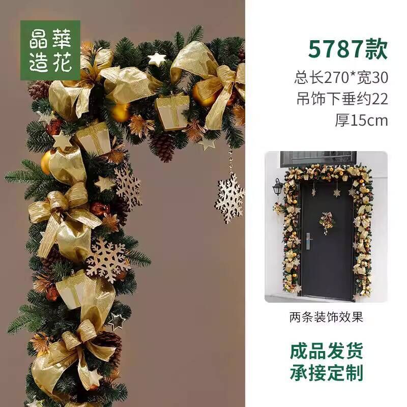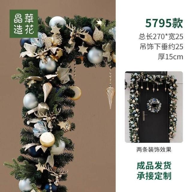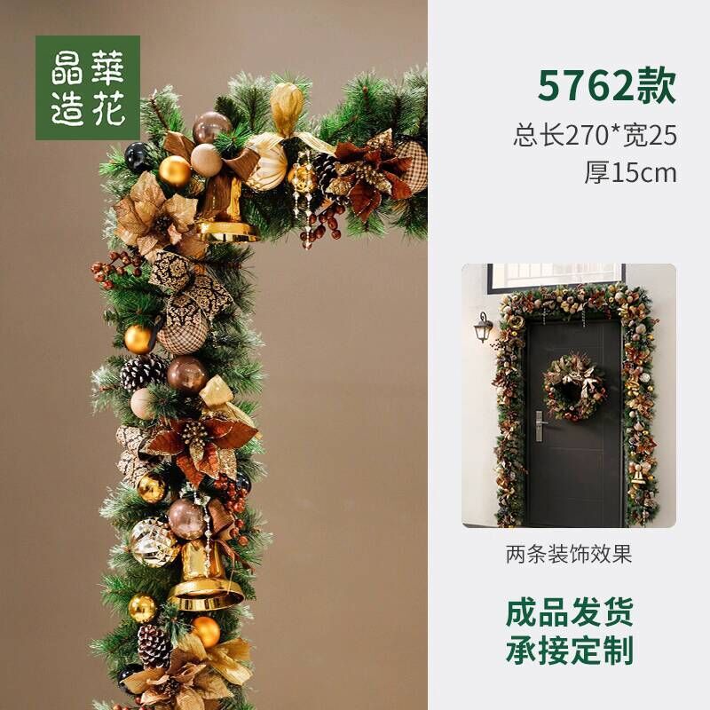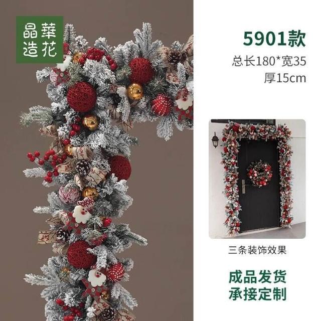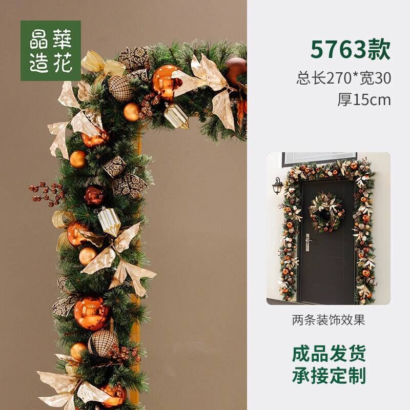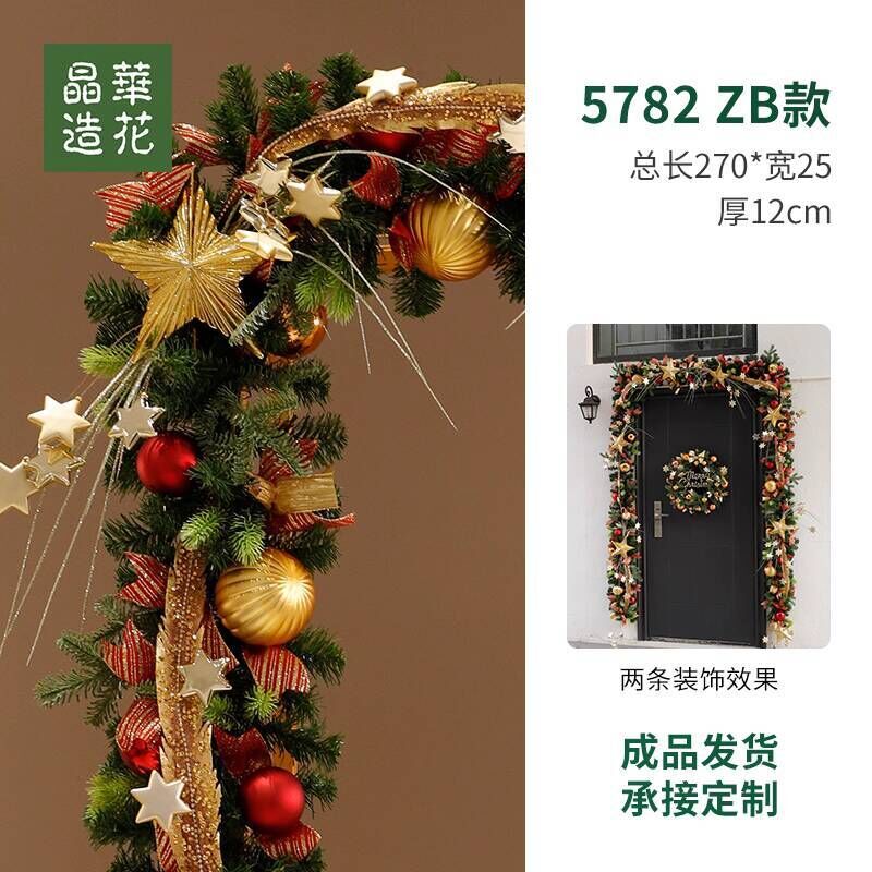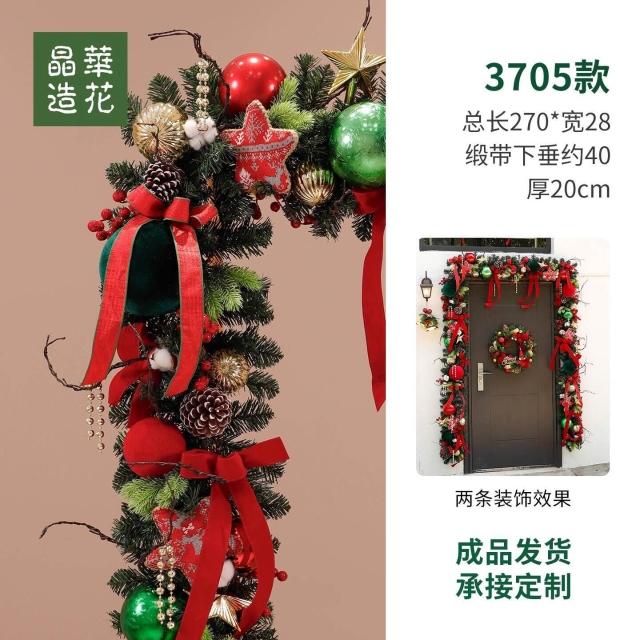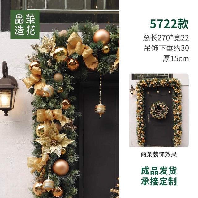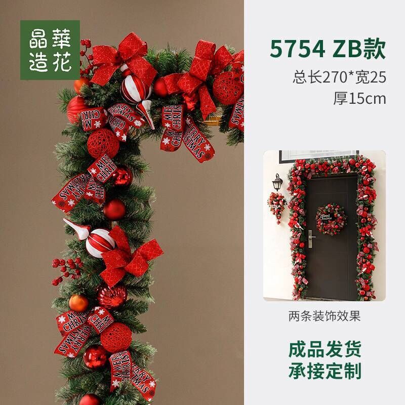 晶華2.7米聖誕藤條加密松針門眉拱門酒店商場藤條聖誕欄桿裝飾品 牧牧