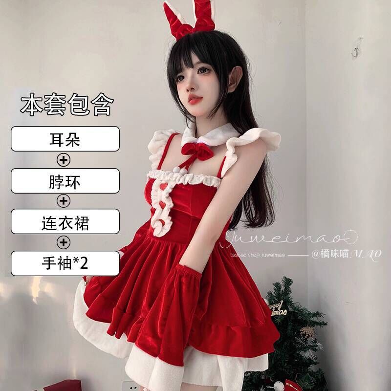 聖誕節主題服裝女性感製服cos純欲兔女郎氛圍感穿搭套裝聖誕戰袍 牧牧