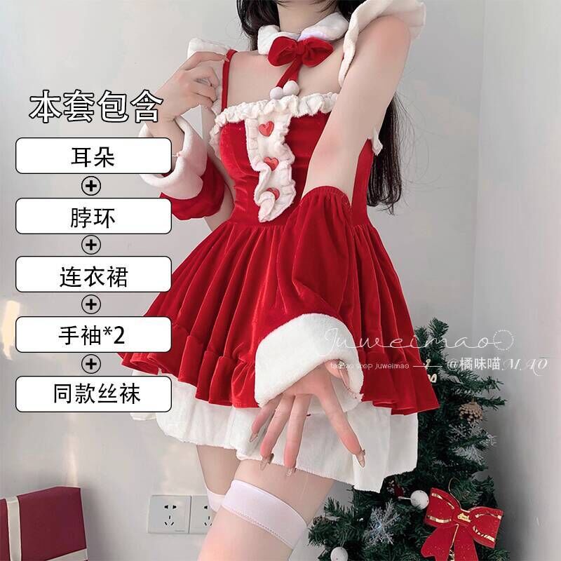聖誕節主題服裝女性感製服cos純欲兔女郎氛圍感穿搭套裝聖誕戰袍 牧牧