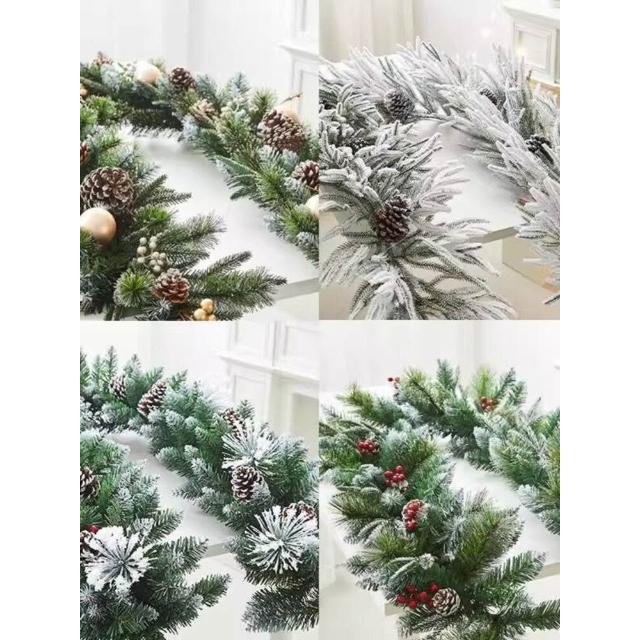 聖誕節裝飾加密藤條酒店商場櫥窗樓梯場景布置植絨積雪藤條門掛飾 牧牧