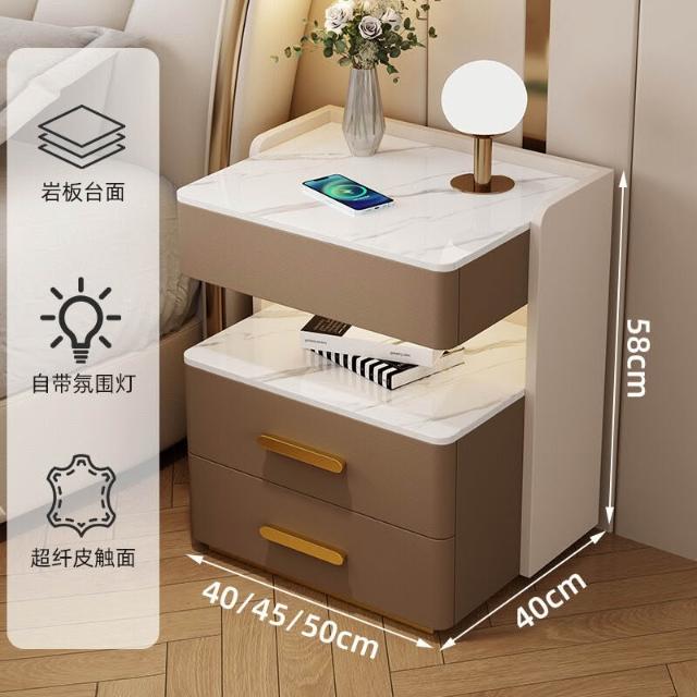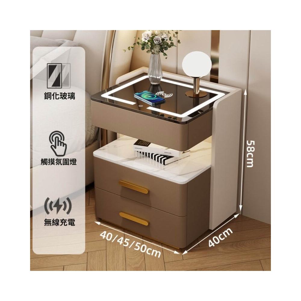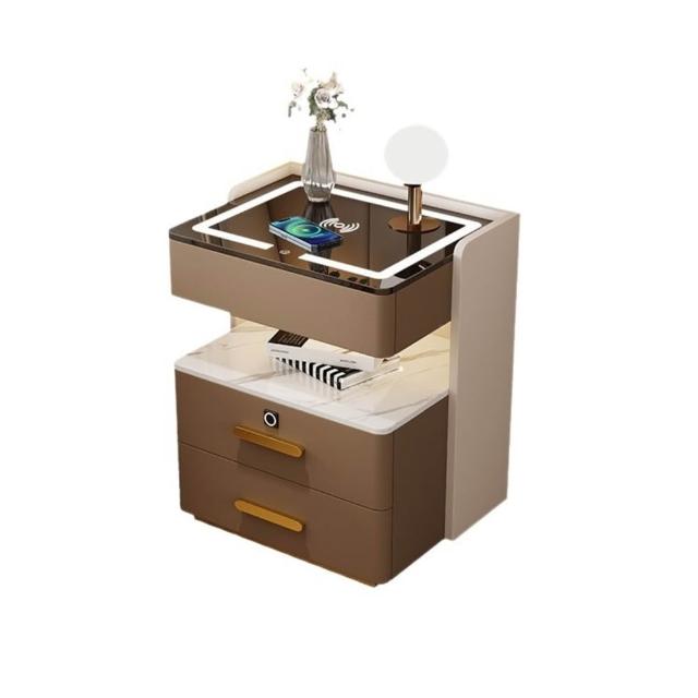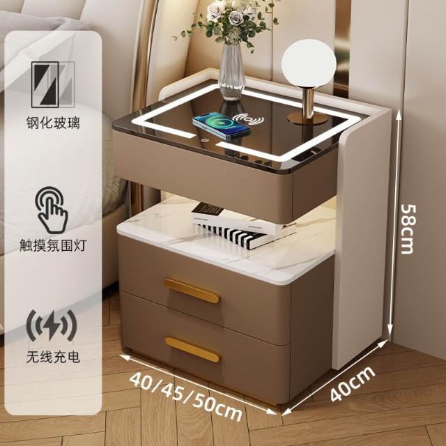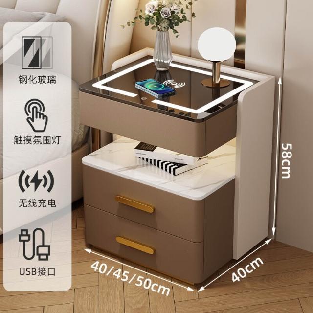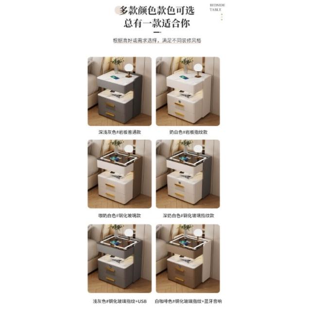牧牧 智能床頭櫃簡約現代可充電置物櫃臥室家用輕奢高級感多功能床邊櫃 73f