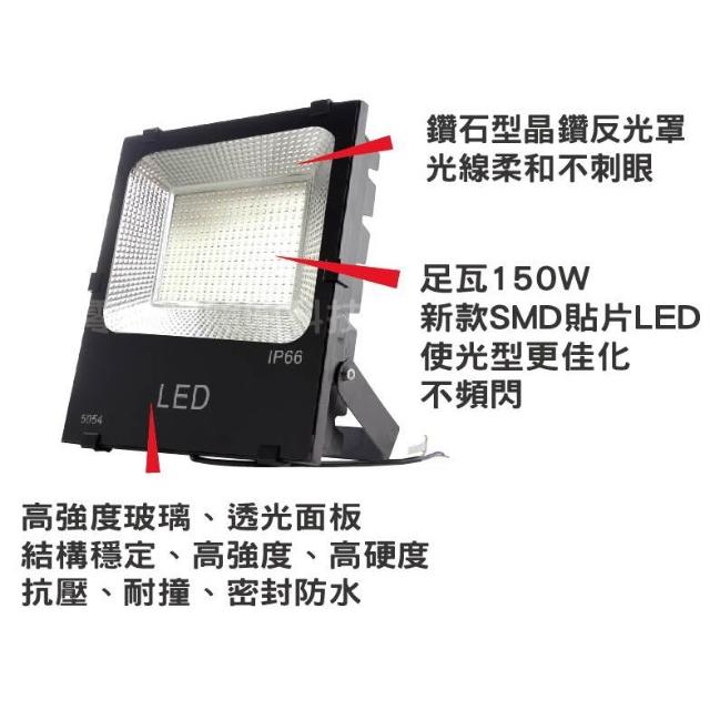 正規足瓦 24年新版 廣角高光效耐操 150W 高階工業級 SMD LED探照燈 防水投射燈 招牌燈 投光燈