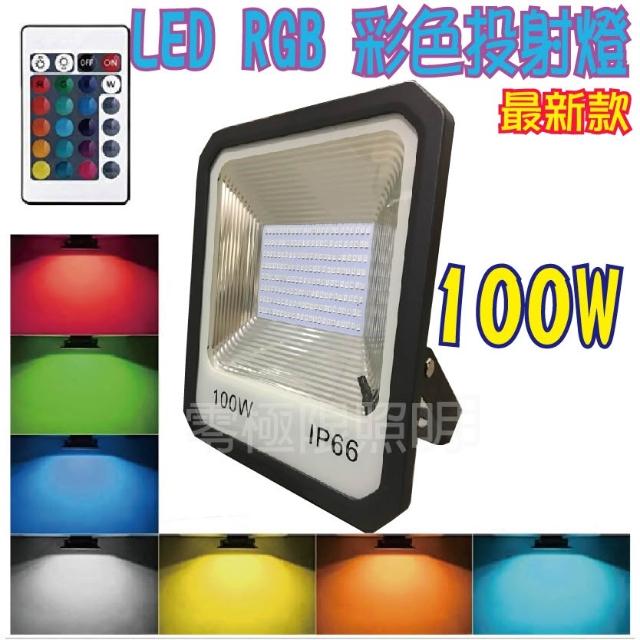 台灣出貨 附發票✦特價工業版【100W RGB LED投射燈】附搖控器 幻彩色 戶外防水 投光燈 探照燈 照樹燈