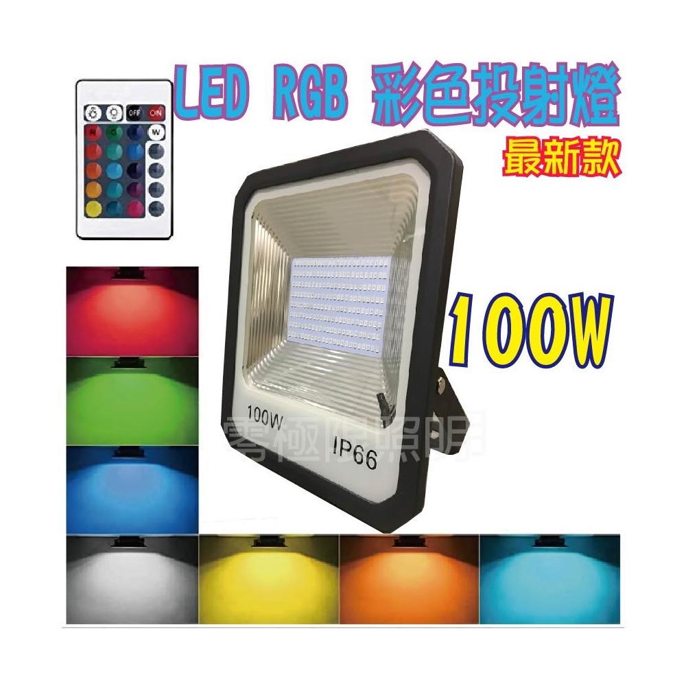 台灣出貨 附發票✦特價工業版【100W RGB LED投射燈】附搖控器 幻彩色 戶外防水 投光燈 探照燈 照樹燈