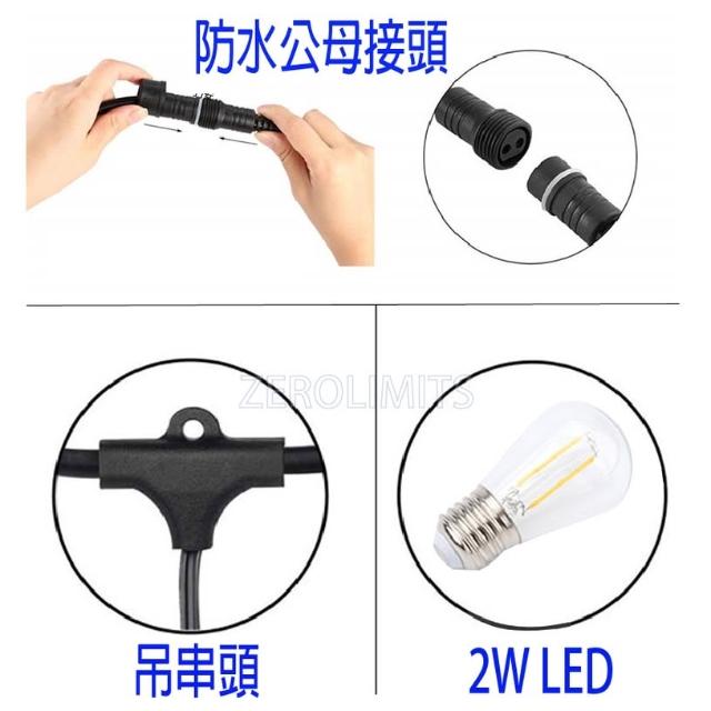 最低價 尺寸最多 含LED2W燈泡 戶外燈串 防水燈串 E27 110V 220V 串燈 婚禮怖置 露營 LED燈串