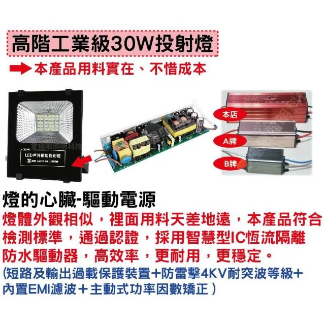瓦高亮度 24年新版 廣角高光效耐操【30W 20W 正高階工業級 SMD LED探照燈防水投射燈 招牌燈