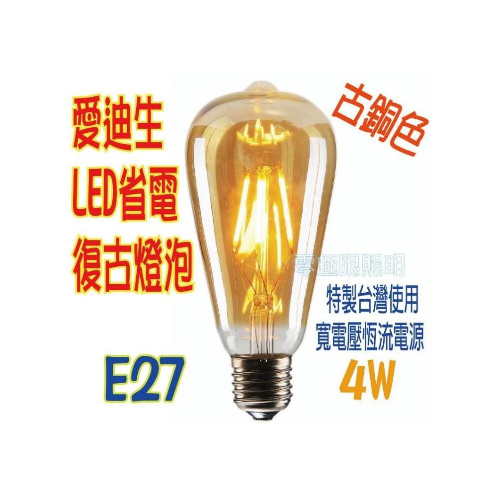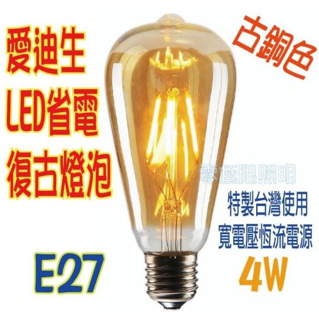 古LED燈泡【復古金LED E27 4WST64 LED燈絲燈 愛迪生燈泡 工業風 鎢絲燈泡
