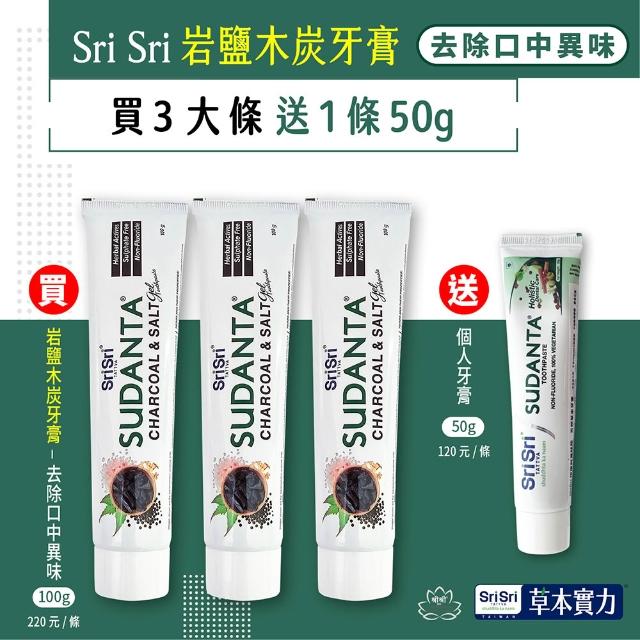 SriSri草本實力 岩鹽木炭凝膠牙膏3+1組-(岩鹽100gx3+草本50gx1) 無氟牙膏