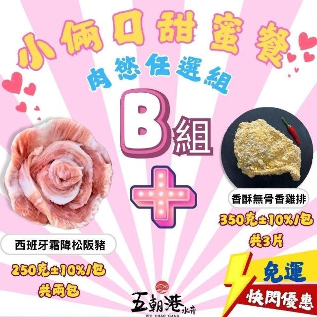 五朝港水產小倆口甜蜜餐-肉慾任選組 (頂級黃金六兩松阪豬+紐澳良雞腿排+古早味上等鹹豬肉+香酥無骨香雞排)