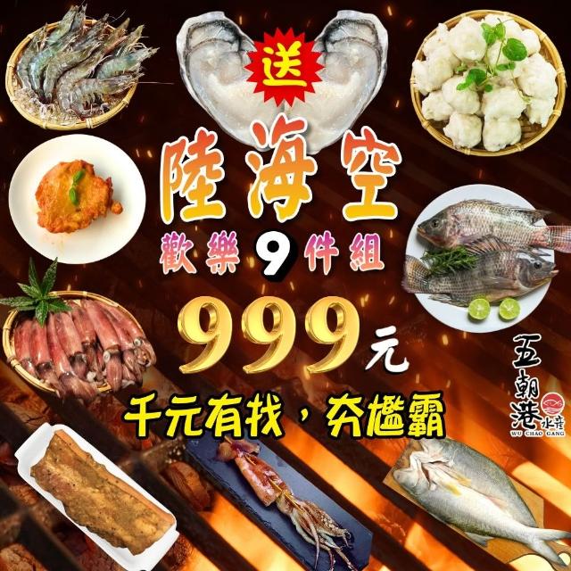 五朝港水產蠔饗團圓宴-超值烤肉組 (白蝦+生蠔+魷魚串+午仔魚一夜干+紐澳良雞腿排+鮮美小卷+古早味上等鹹豬肉+台灣鯛+花枝丸)