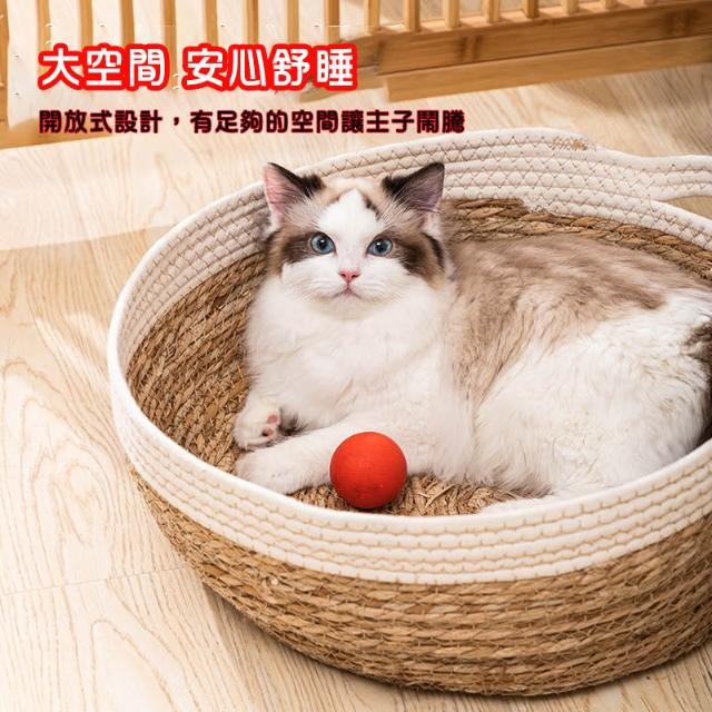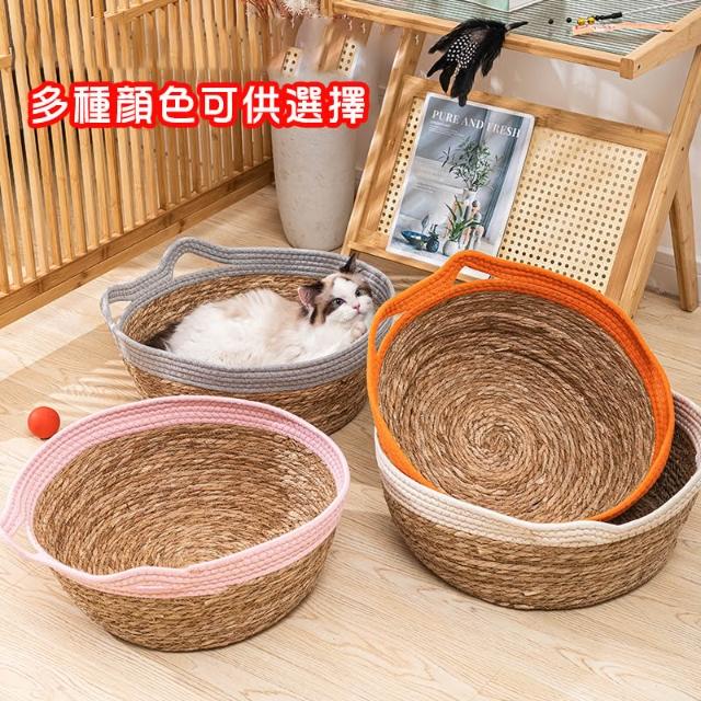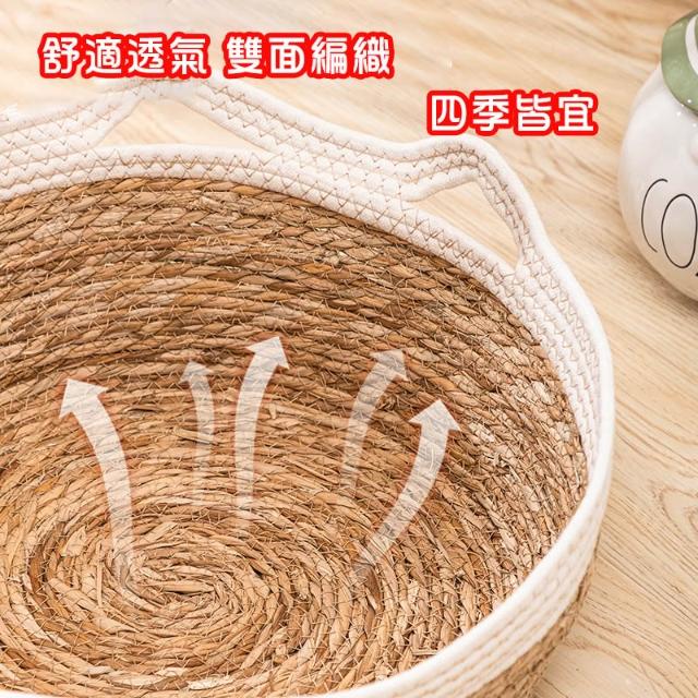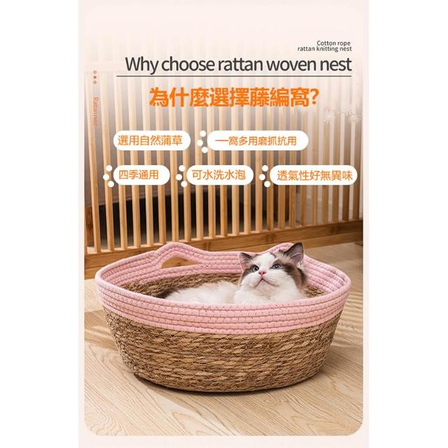 威杰爾寵物藤編貓窩 四季可用 寵物窩 手工編織藤窩 貓抓板 日式貓咪窩 蒲草涼席 圓形狗窩 可拆洗草編寵物窩 G085