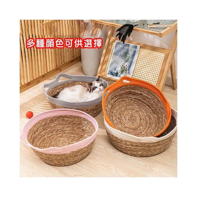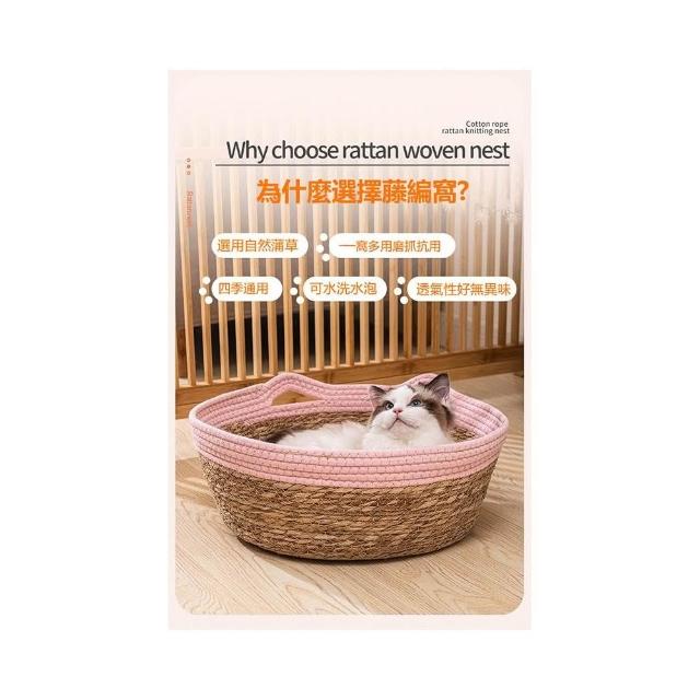 威杰爾寵物藤編貓窩 四季可用 寵物窩 手工編織藤窩 貓抓板 日式貓咪窩 蒲草涼席 圓形狗窩 可拆洗草編寵物窩【G085】