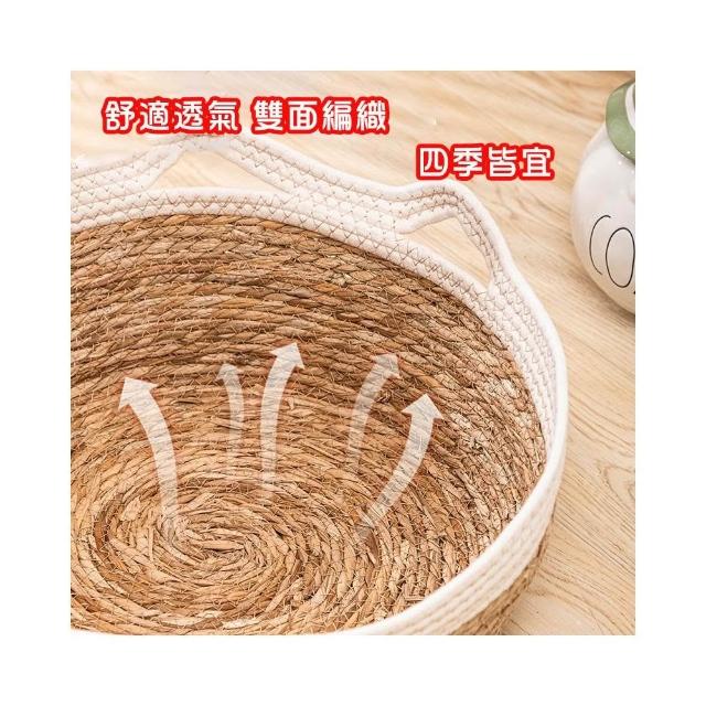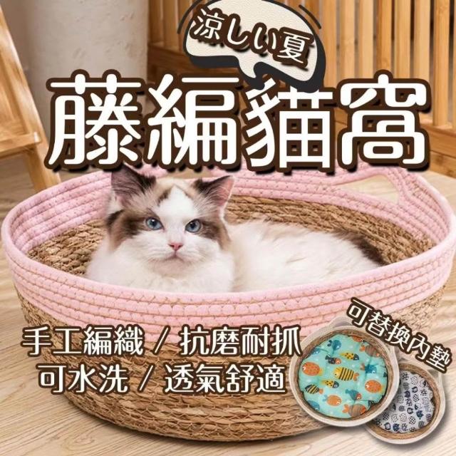威杰爾寵物藤編貓窩 四季可用 寵物窩 手工編織藤窩 貓抓板 日式貓咪窩 蒲草涼席 圓形狗窩 可拆洗草編寵物窩【G085】