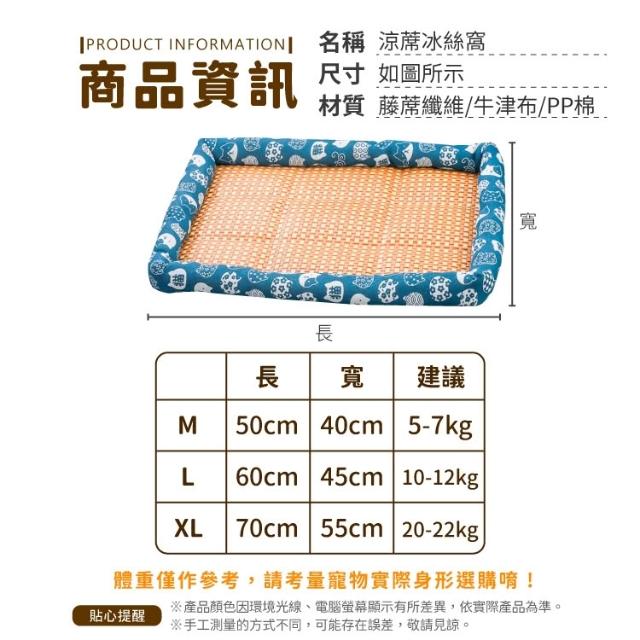 威杰爾寵物寵物涼蓆窩 寵物涼感床 涼感墊 寵物睡墊 藤蓆窩 寵物涼墊 狗窩 貓床 貓窩 寵物睡窩 冰絲床 C061
